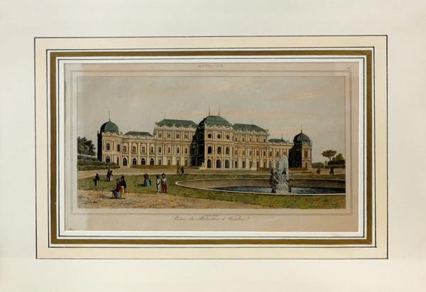 Paire de vues du château de Schönbrunn et du Belvédère, gravure, 10x18 cm