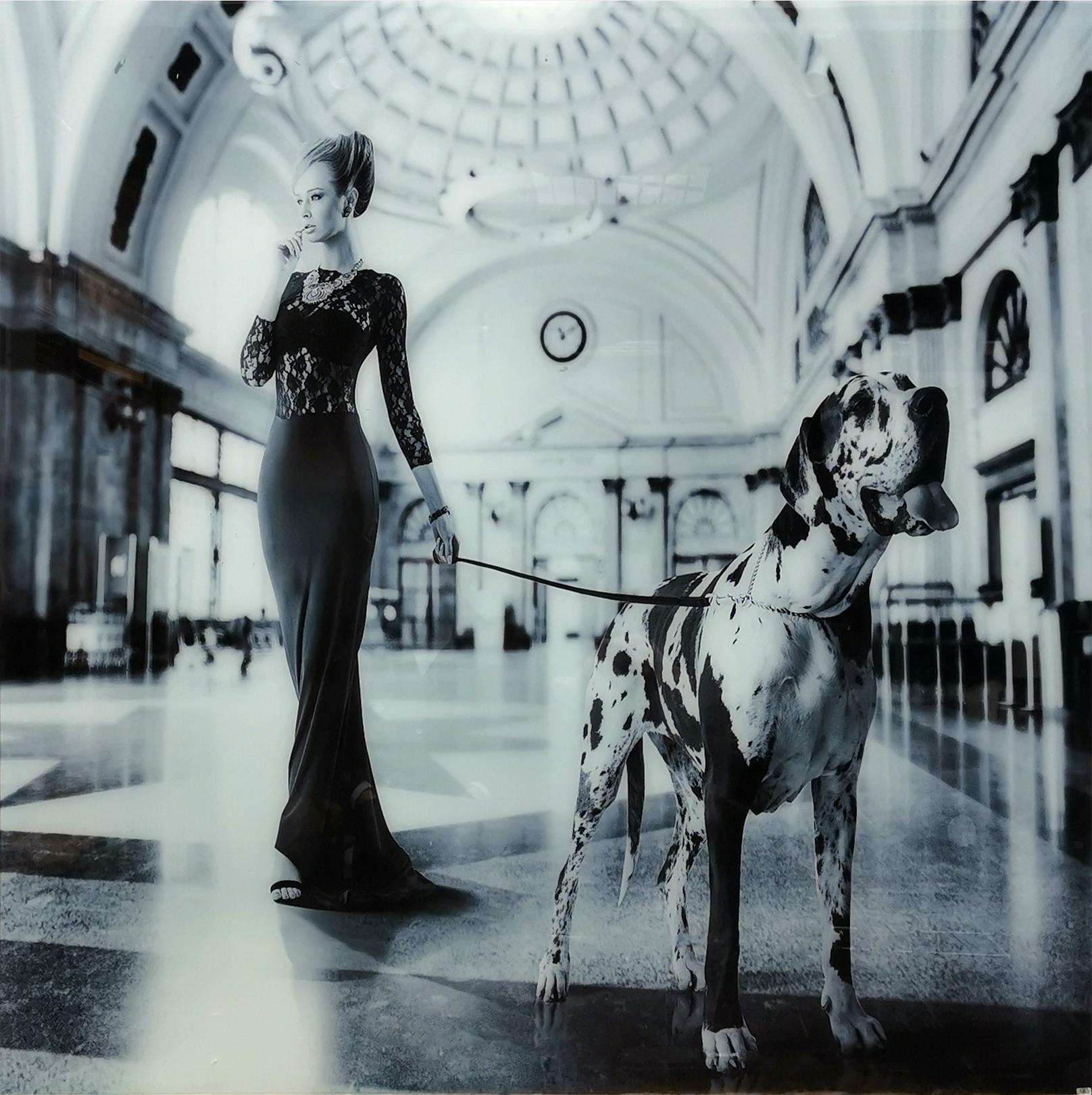 Bas-relief figurant la Vierge à l'Enfant et Saint Jean, stuc pat...