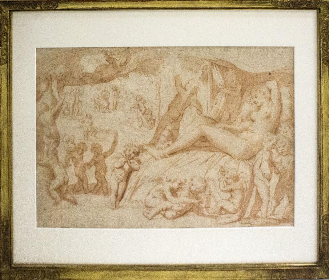 Vénus et les putti, gravure à la manière de la sanguine, 26x40 cm