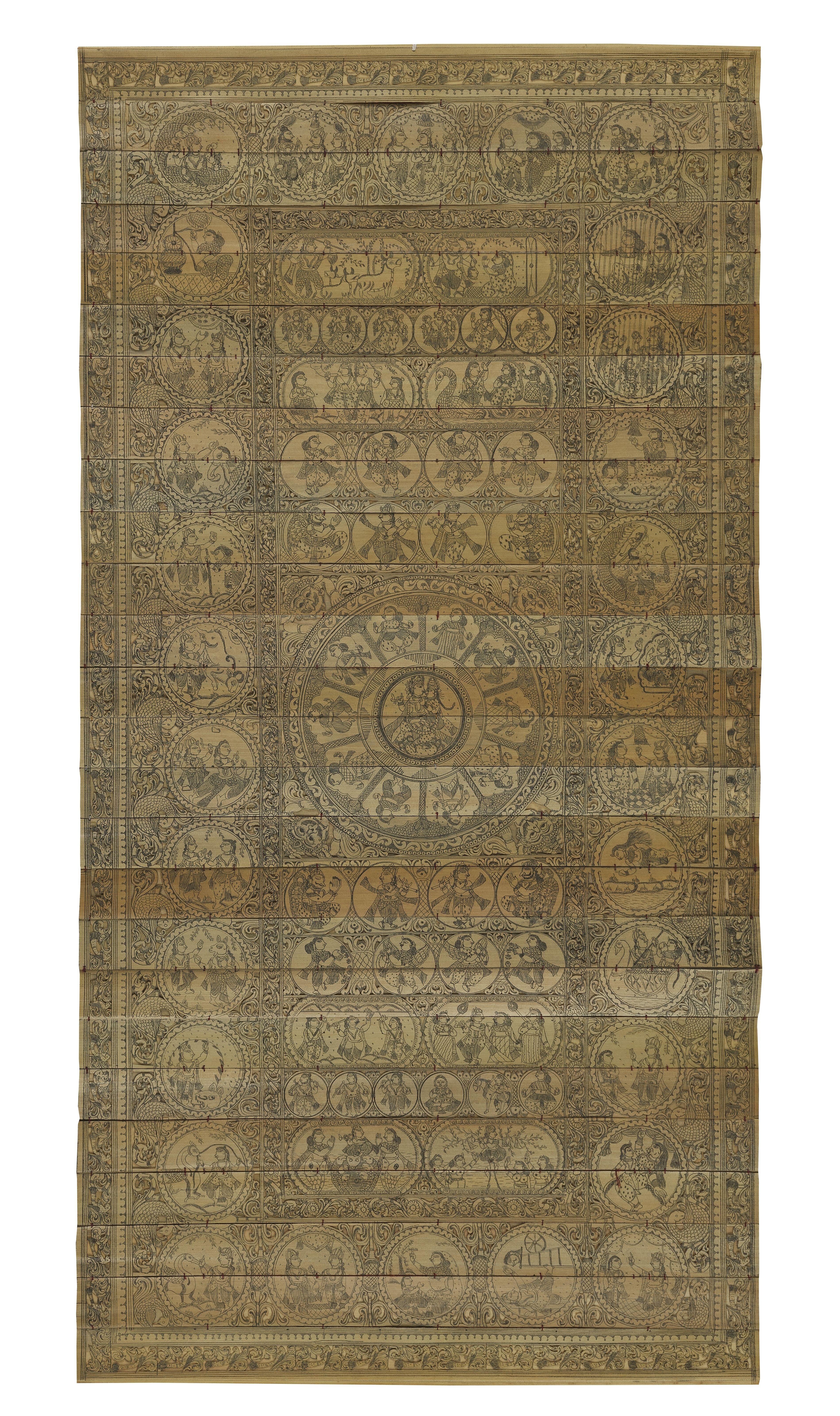 Divinités dans des réserves, panneaux de feuilles de bananiers, gravés et assemblés, 88x46 cm