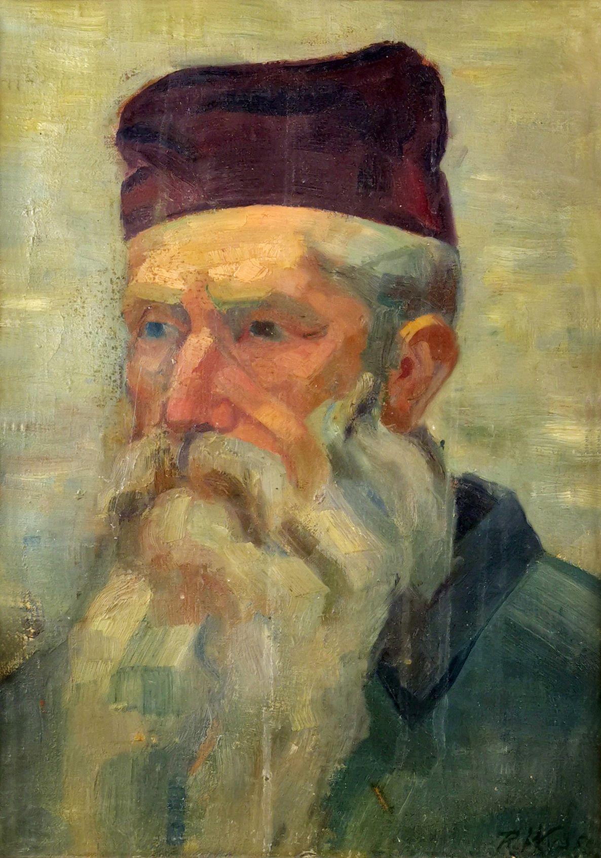 Portrait d'homme barbu, huile sur toile, signée R. Wysser et datée 1914, 40x30 cm