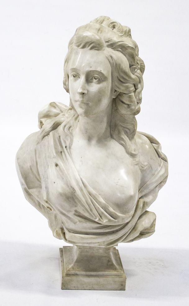 Portrait de femme à la poitrine dénudée, marbre blanc, H 79 cm