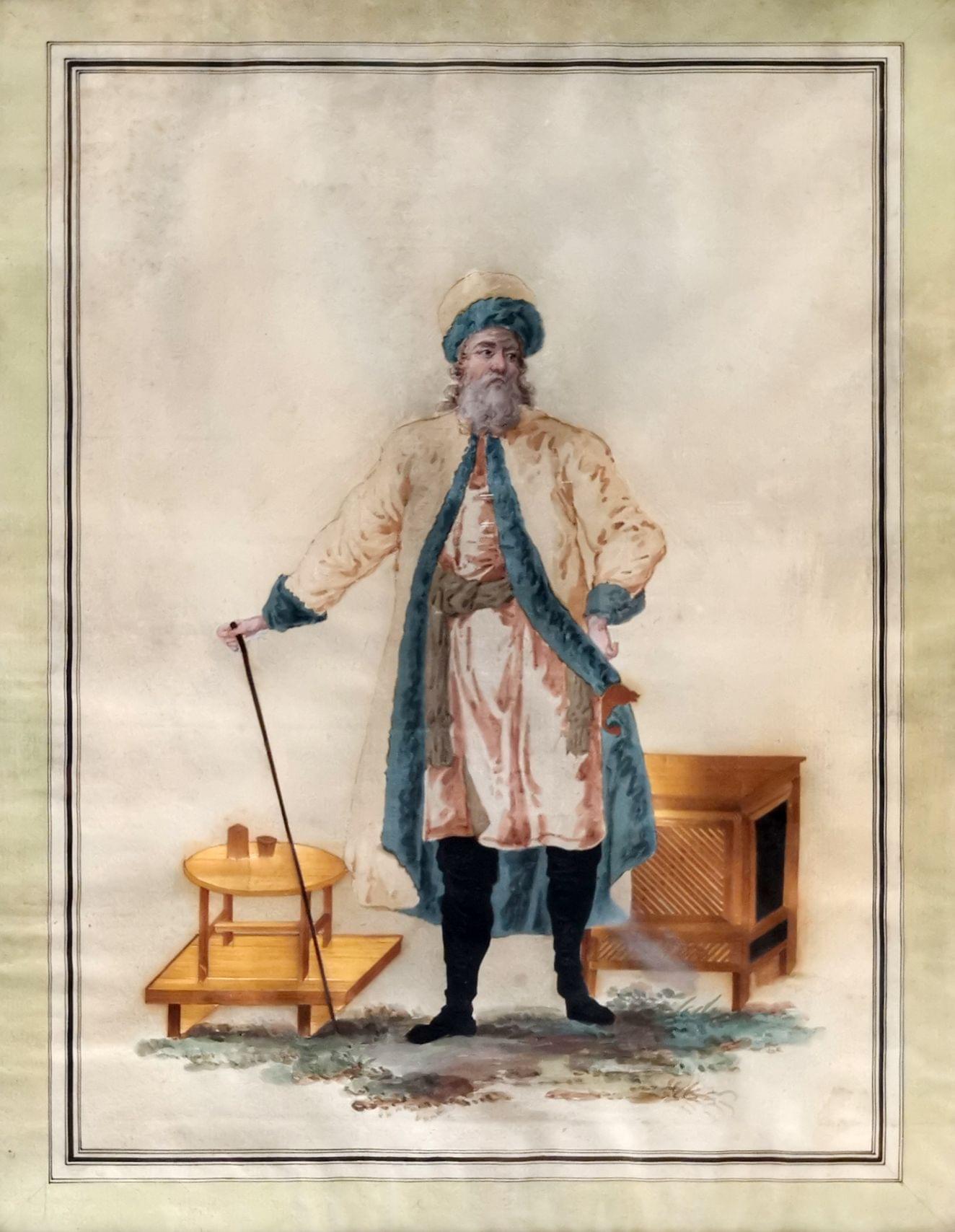 Deux portraits d'homme, aquarelle et marqueterie de paille, 27x20 et 32x24 cm
