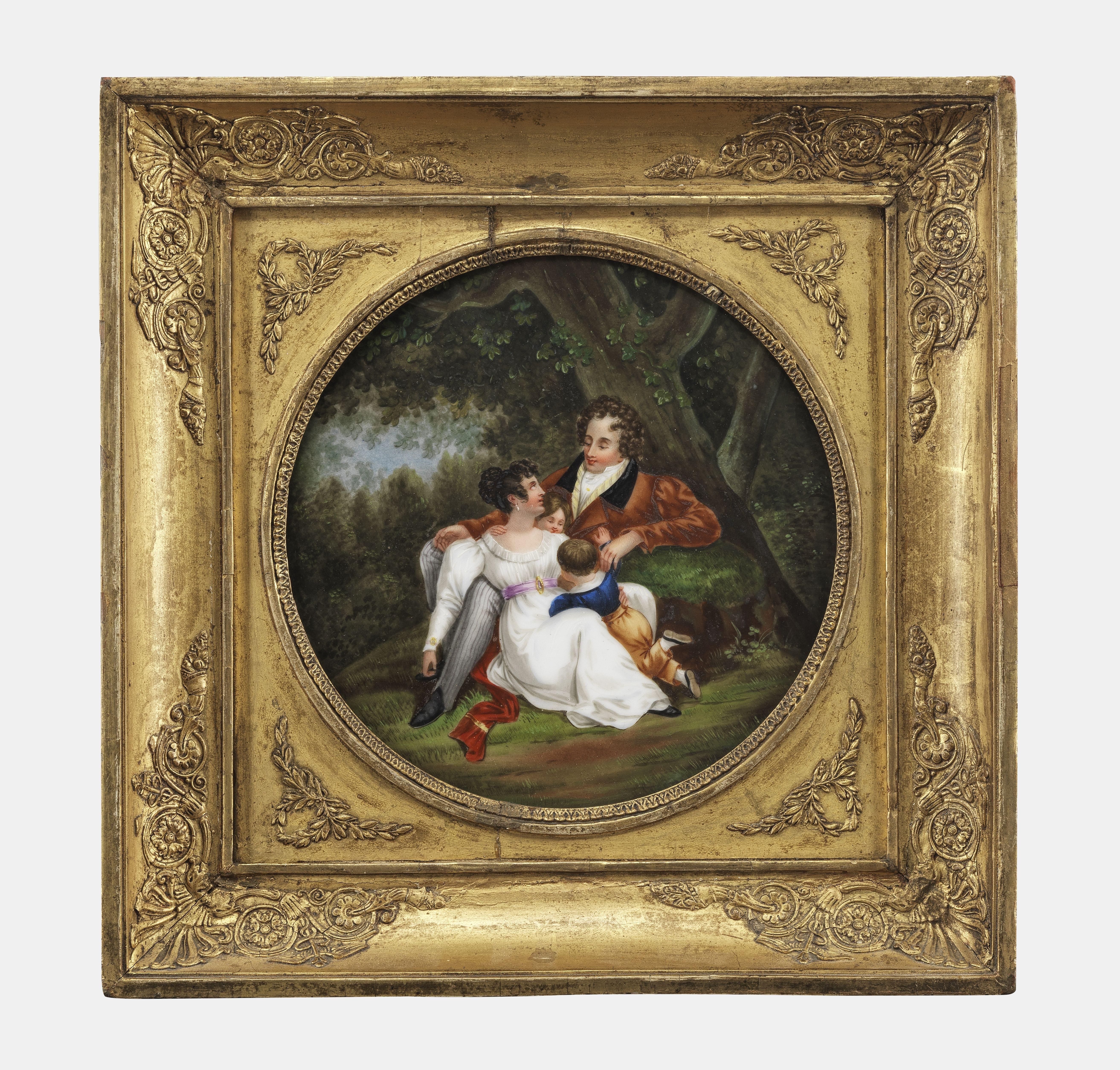 Portrait d'une famille, émail sur porcelaine, D 22 cm