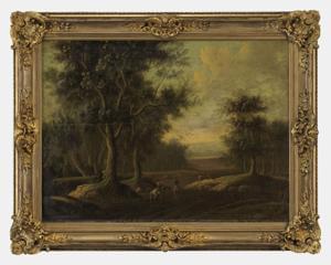Cavaliers et chasseurs, huile sur toile, 53x70 cm