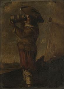 Buveur de bière, huile sur panneau, 17,5x13 cm