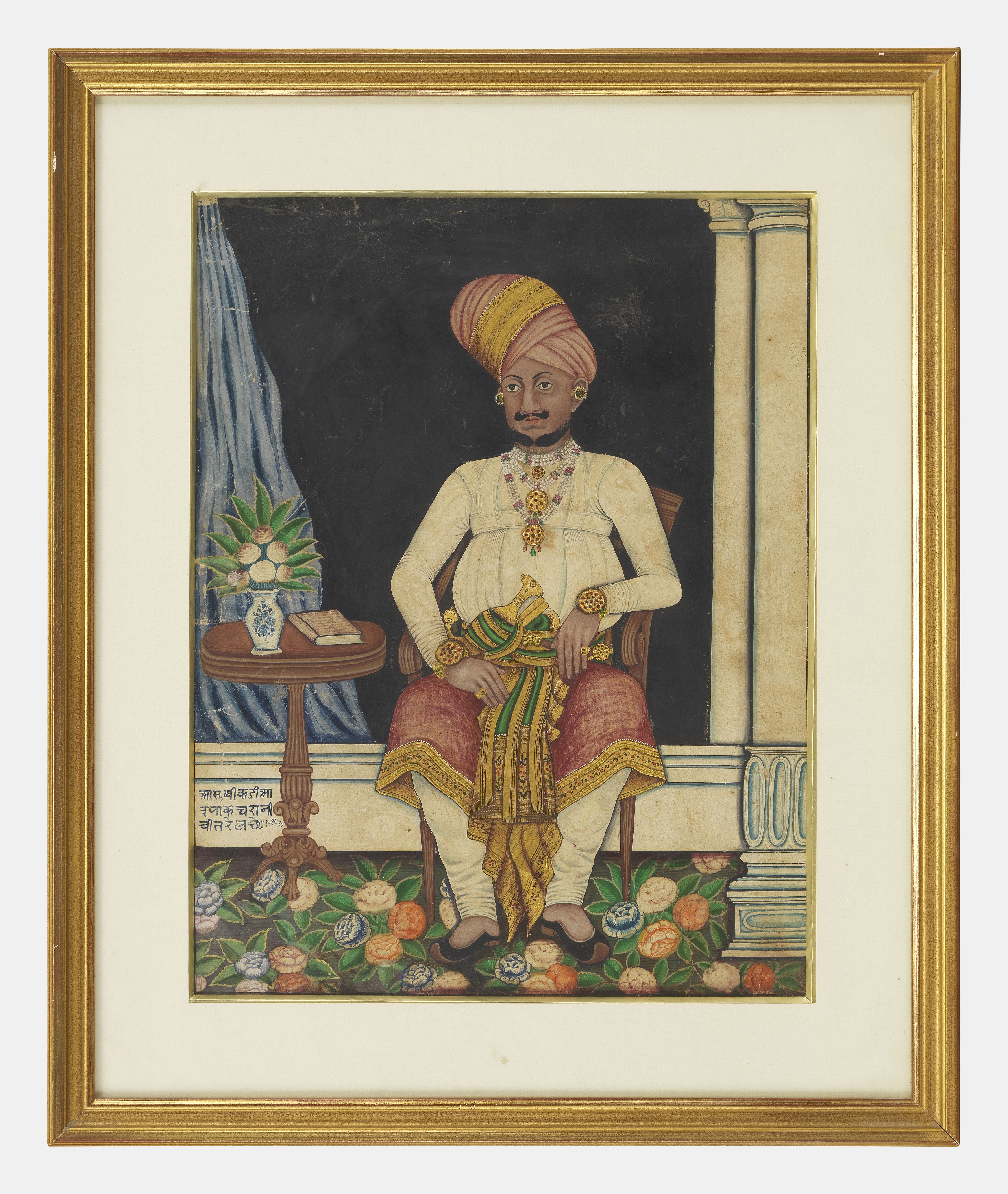 Portrait d'un noble en tenue traditionnelle, gouache sur papier réhaussée à la feuille d'or, 43x33 cm. Provenance: Les Stern, une famille de collectionneurs.