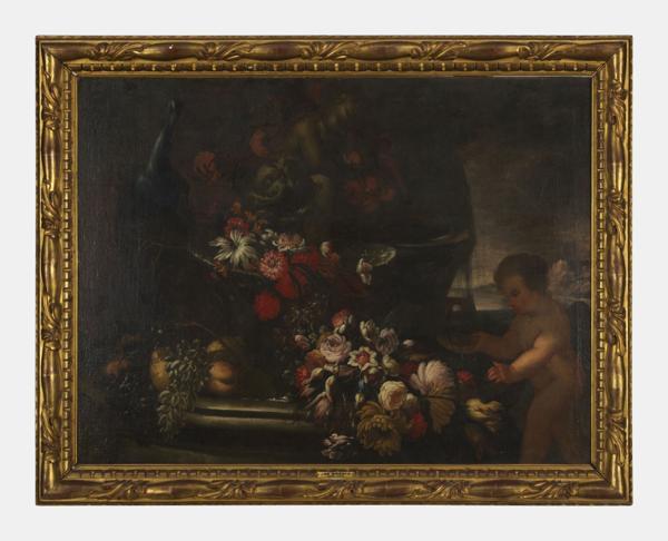 Bois sculpté, laqué noir et doré, D 58 cm. Provenance: chambre d...