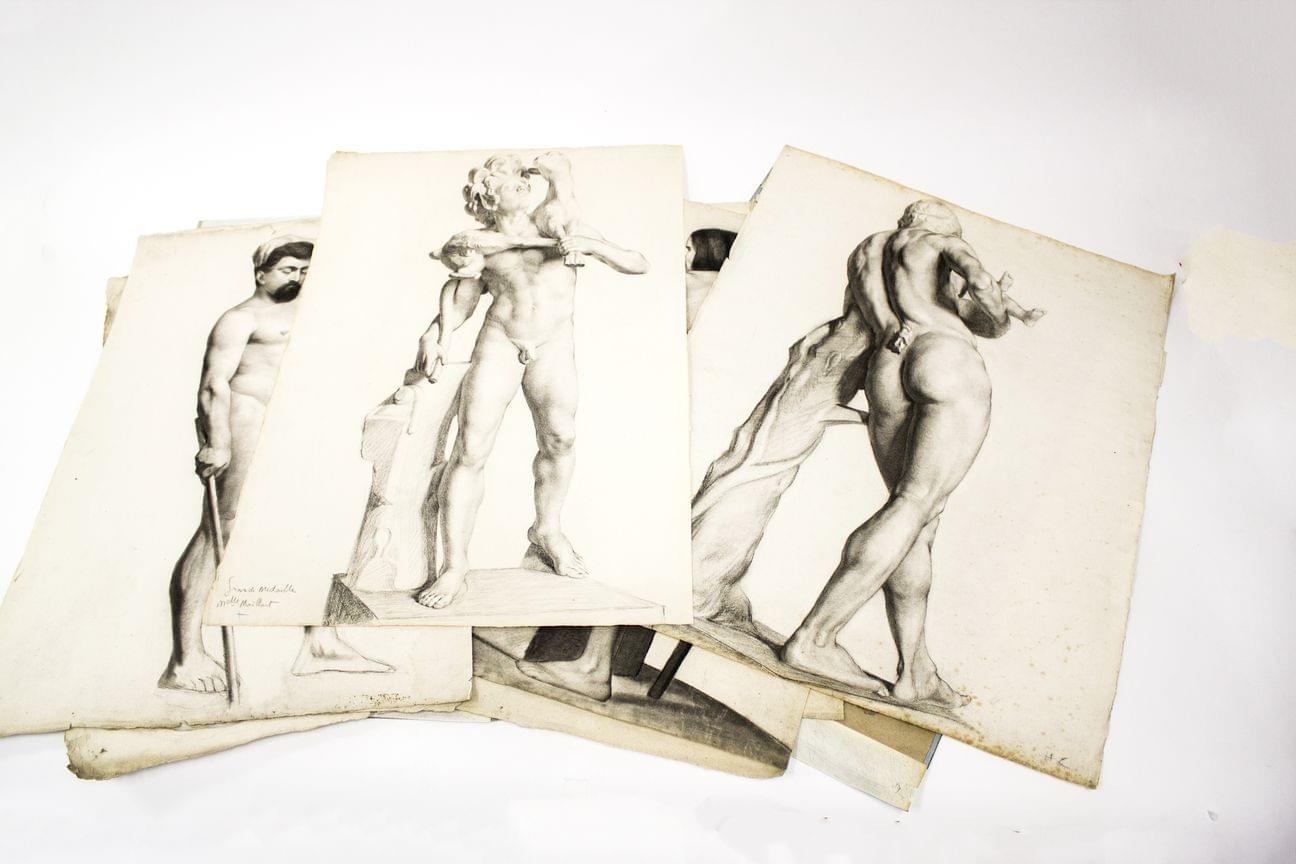 Nus masculins académiques, suite de 10 dessins, mines de plomb sur papier