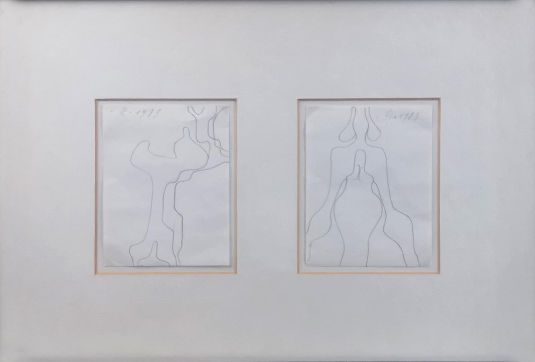 Deux silhouettes, deux mines de plomb sur papier dans un même cadre, 13x10 cm. Provenance: collection Marisa Perret-Rezzonico