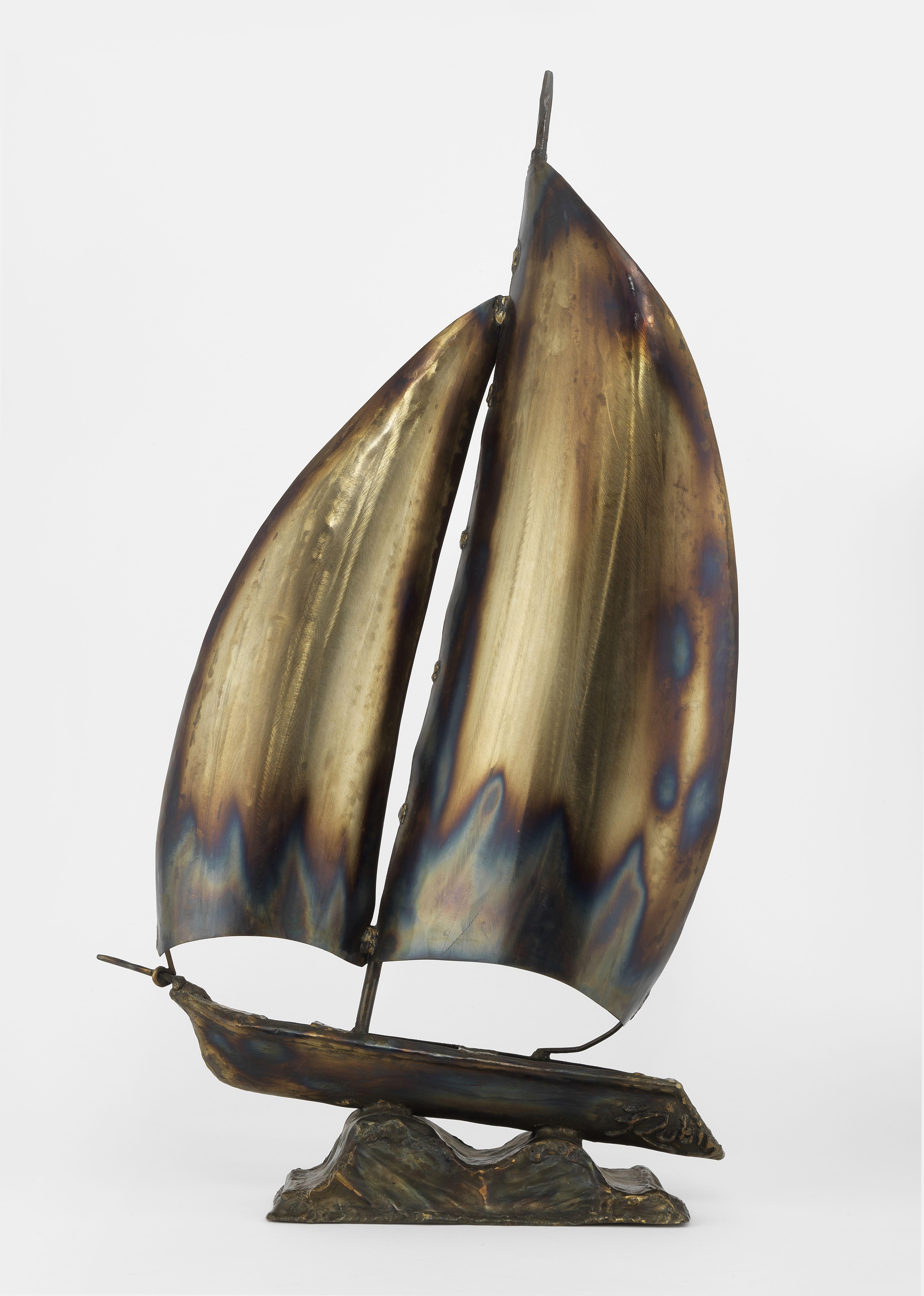 Sculpture figurant un bateau, métal soudé, signature non identifiée, H 79 cm. Provenance: Collection Prince et Princesse de Savoie. Provenienza: Collezione Principe e Principessa di Savoia