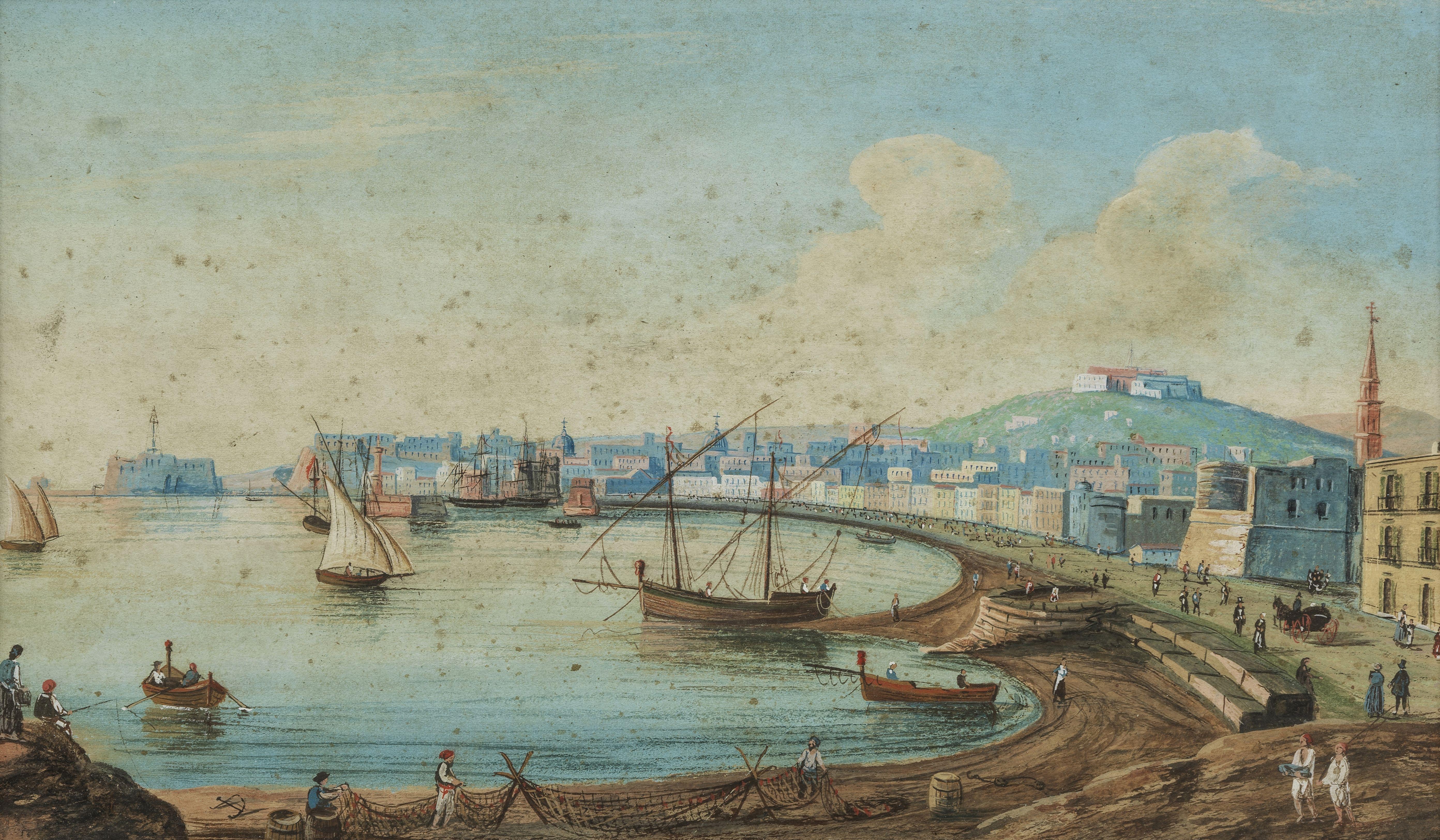Vues de la baie de Naples, paire de gouaches sur papier, signées...