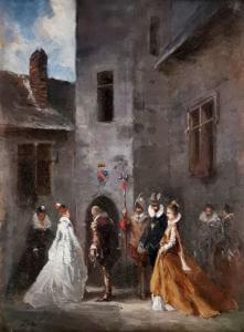 Mariage, huile sur toile, signature illisible, 33x24 cm