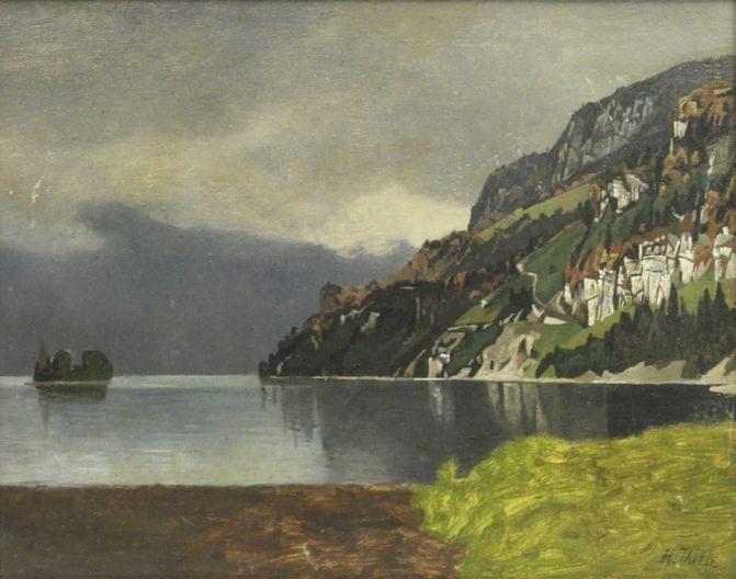 Lac et montagne, huile sur toile signée H. Thiele, 31x39 cm. Lot vendu au profit de l'association Frères de nos Frères