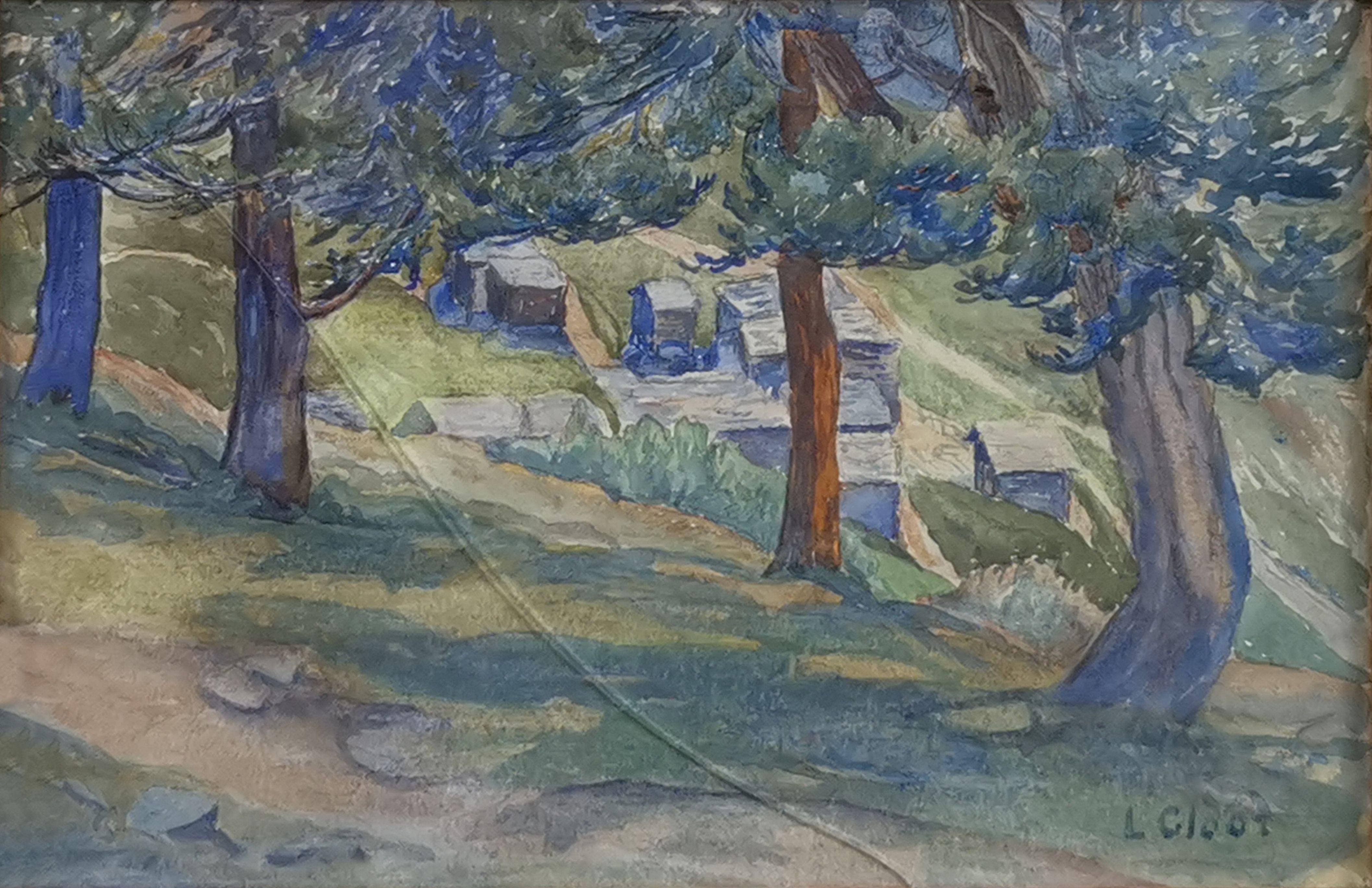 Hameau valaisan, aquarelle sur papier, signée L. Gloor, 19x29 cm