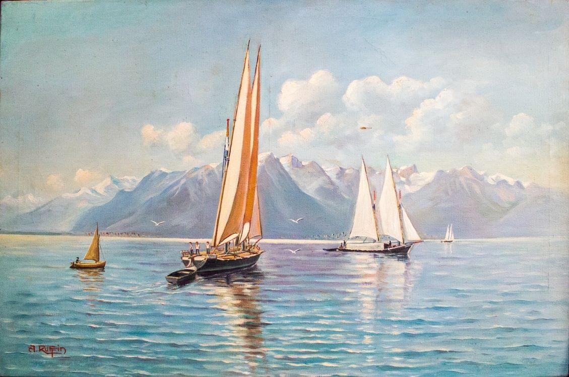 Vue de Genève, lithographie rehaussée sur papier, 35x53 cm