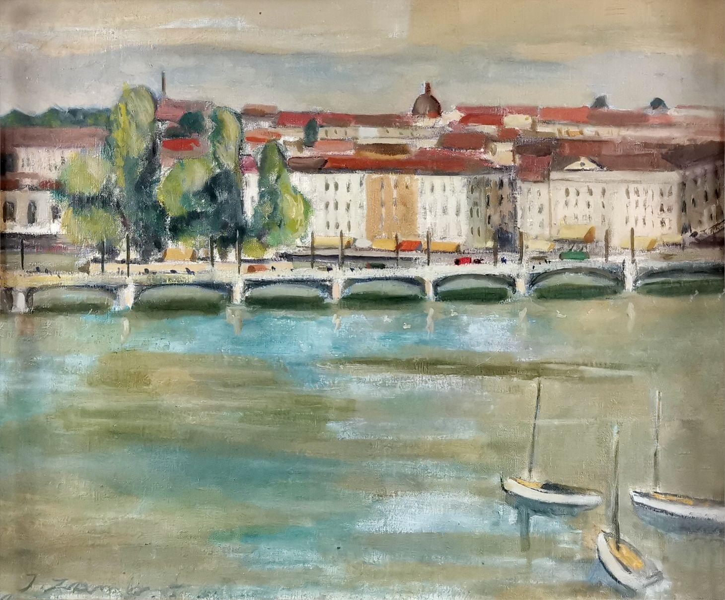 Vue de Genève, huile sur toile, signature illisible, 39x46 cm