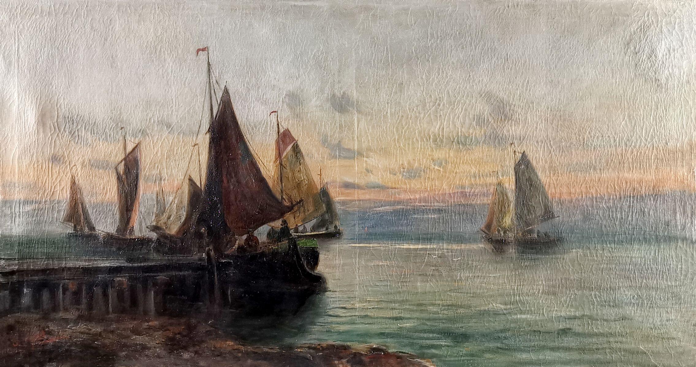 Voiliers sur le Lac Léman, huile sur toile, signature illisible, 61x118 cm