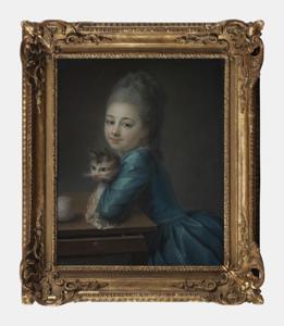 Jeune fille au chat, pastel sur papier, 55x44 cm