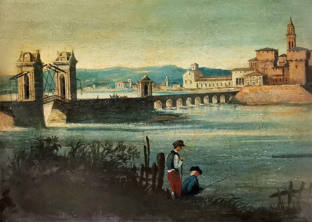 Pêche au bord du fleuve, huile sur carton, 29x40 cm