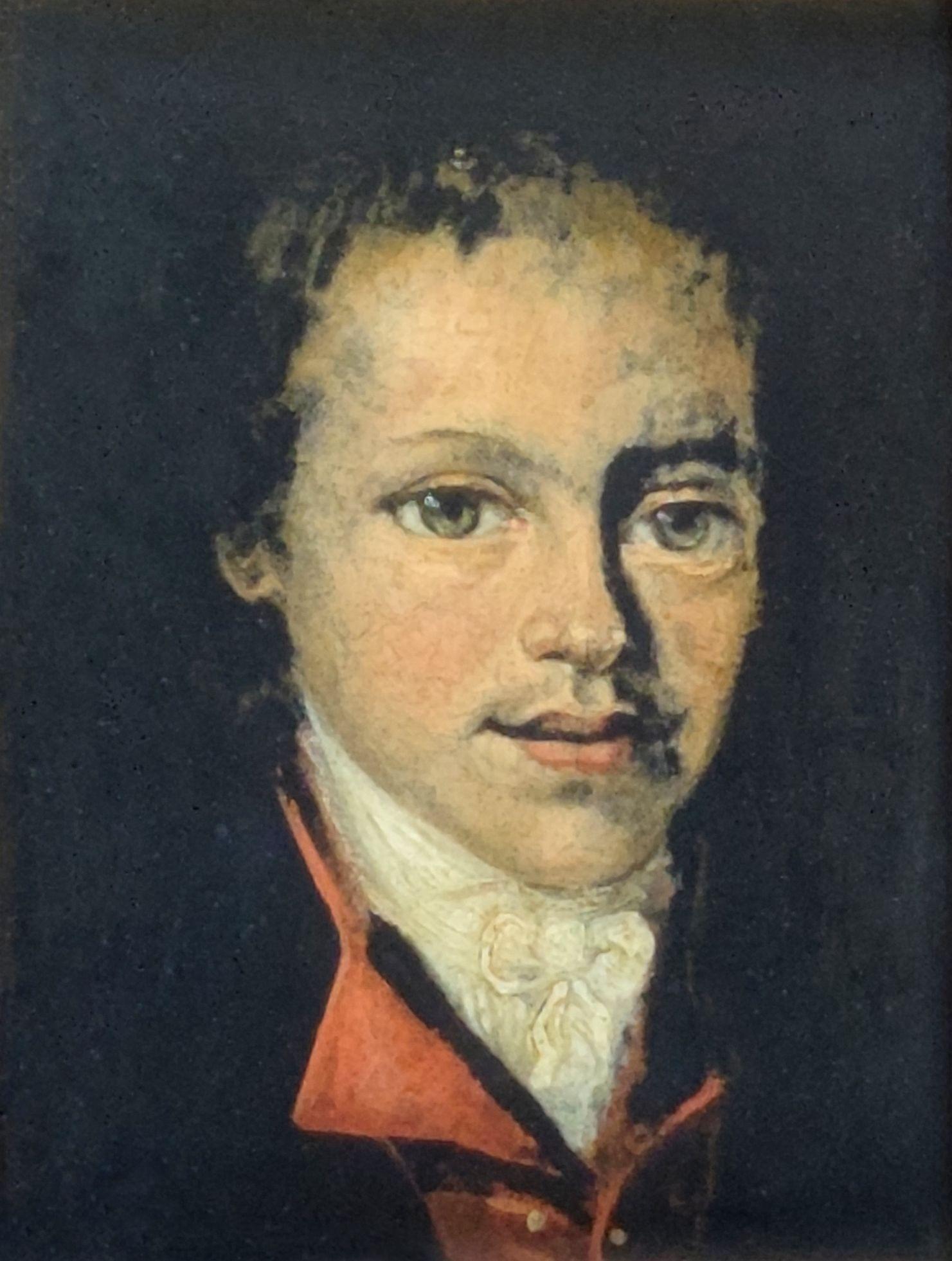 Portrait de jeune homme au col rouge, huile sur panneau, 16x12 cm