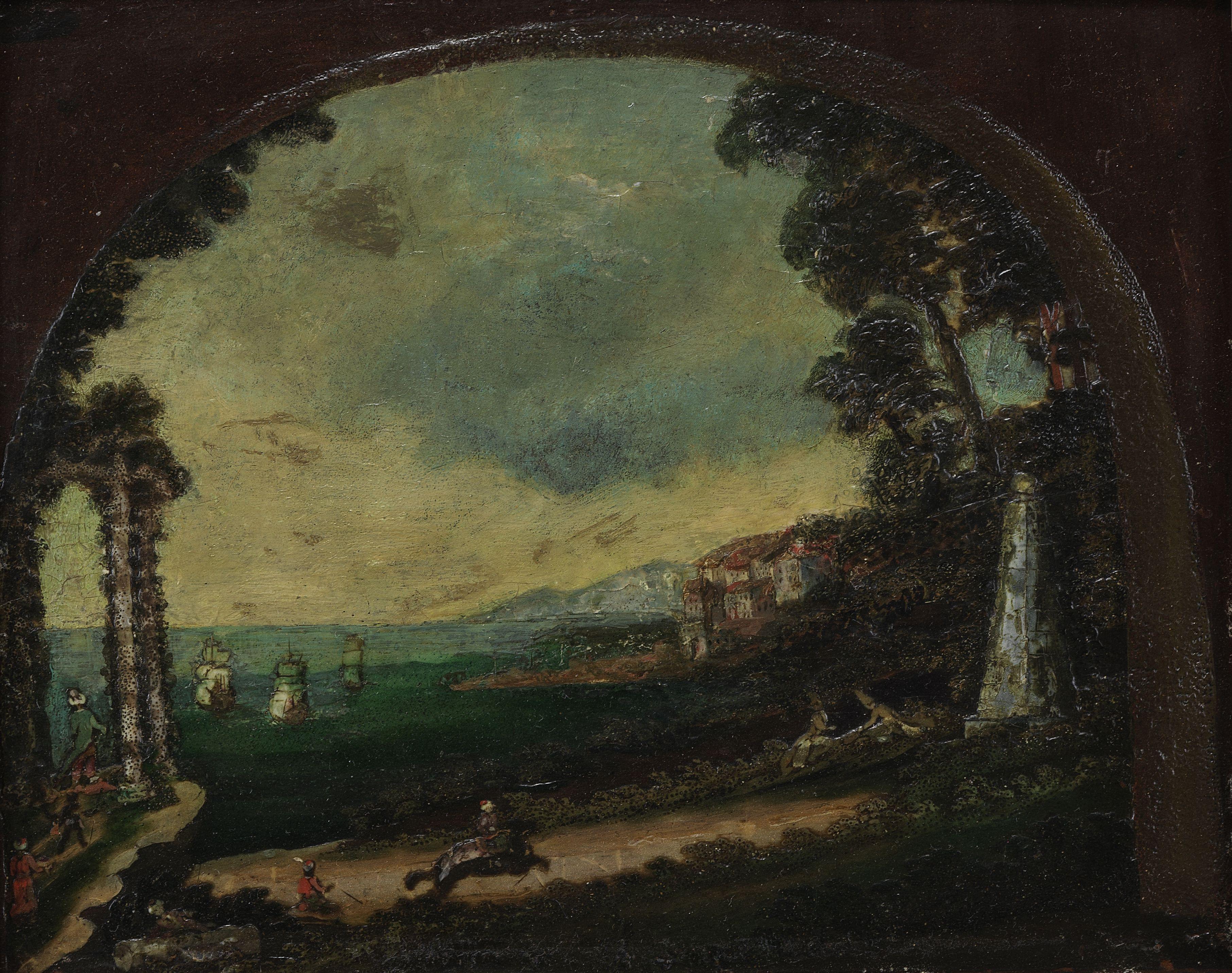 Bord de mer animé, huile sur papier marouflé sur panneau, 18.5x24 cm