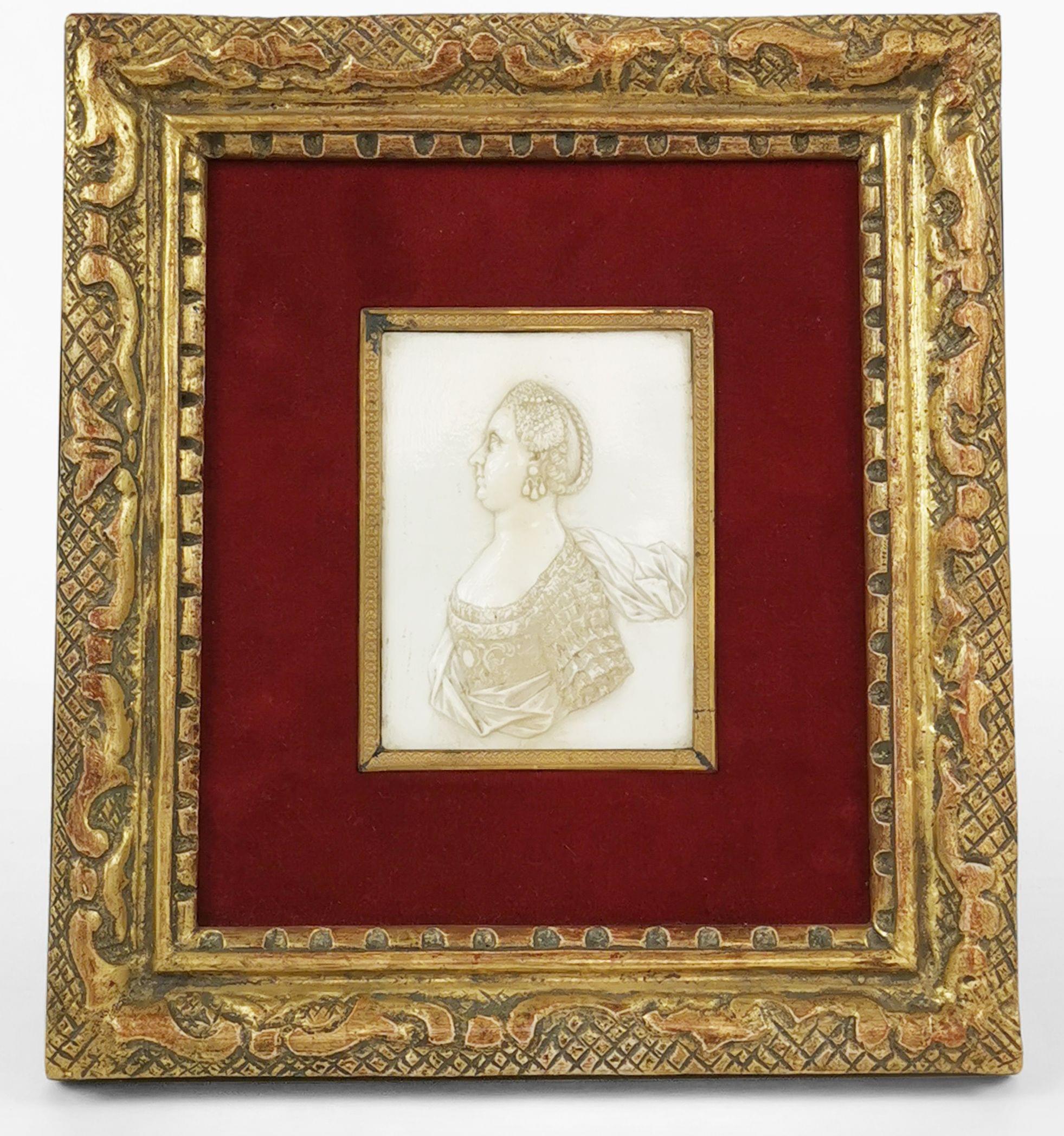 Portrait en profil et en bas-relief de la princesse Sulkowska, ivoire, 10x7 cm