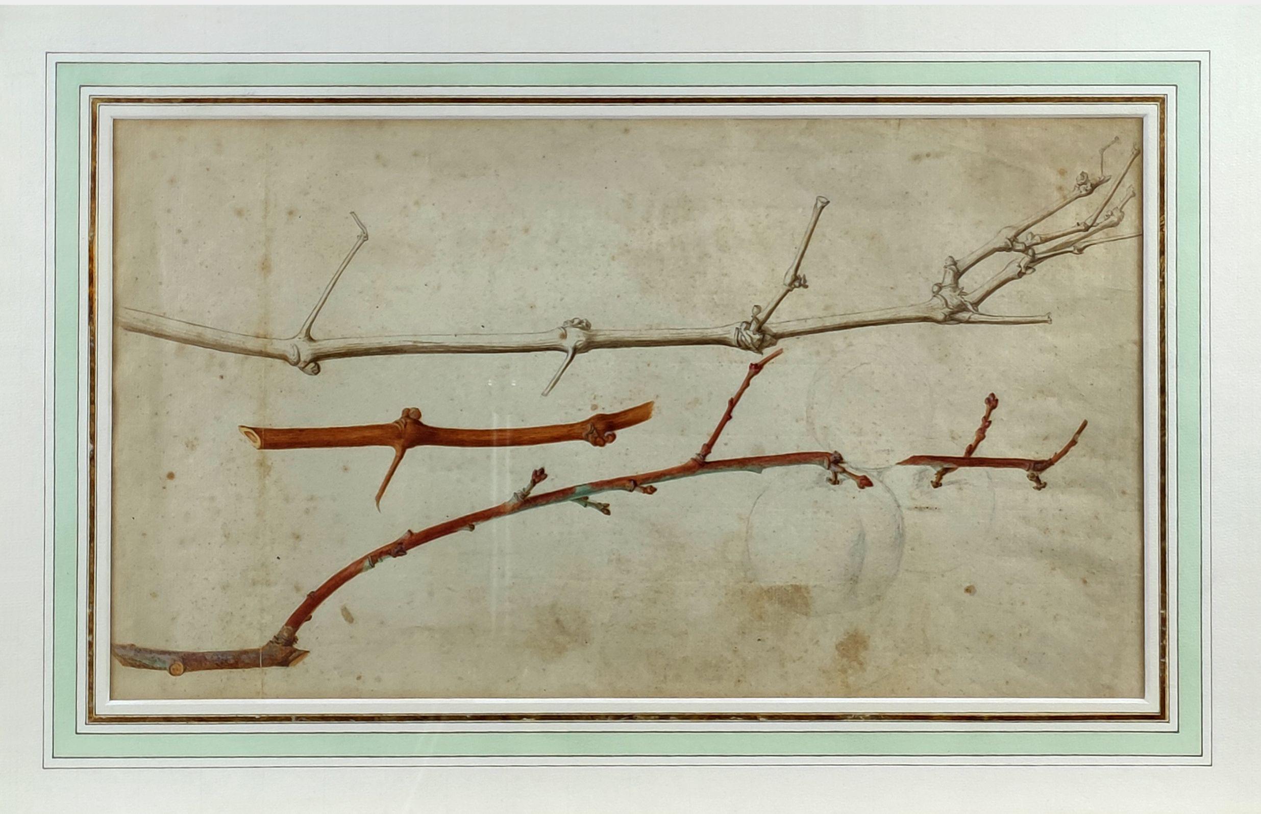 Etude de branches de pêcher, aquarelle et mine de plomb sur papier, 25x45 cm