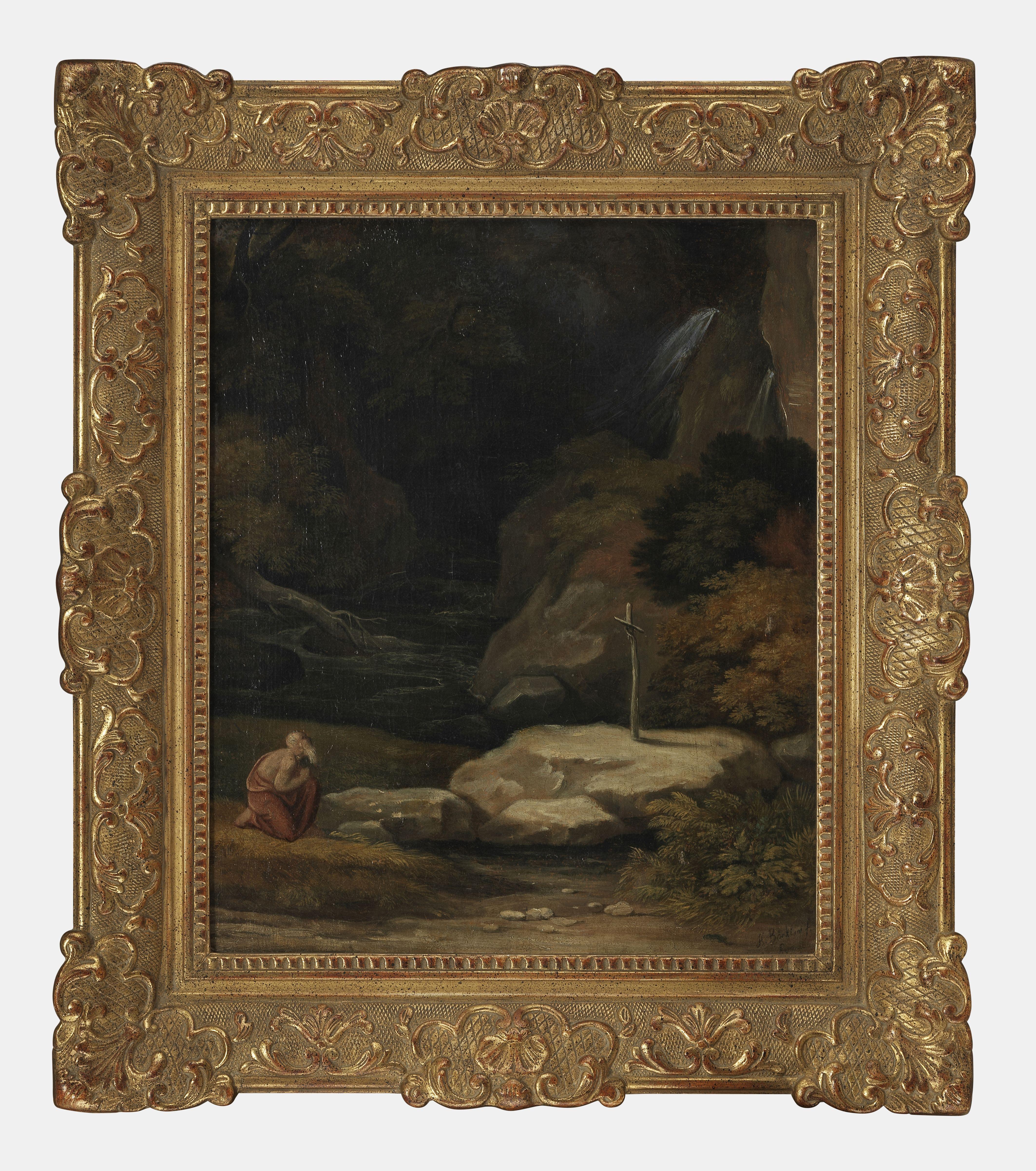 Saint Jérôme agenouillé devant la Croix, huile sur toile, porte une signature A. Böcklin, 45x37 cm