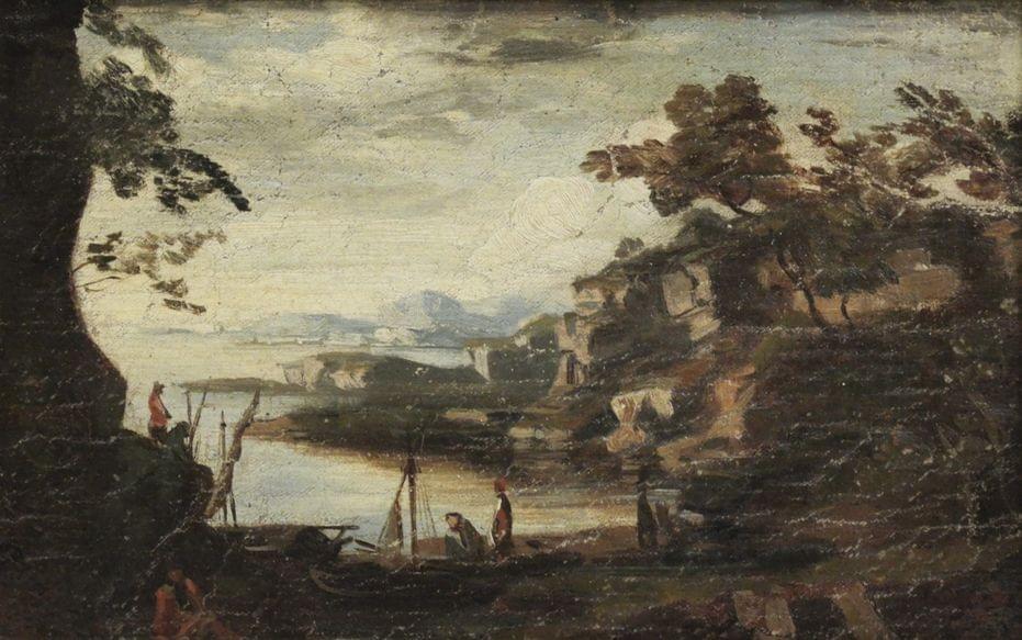 Paysage d'Italie animé, huile sur toile marouflée sur panneau, 17x26 cm
