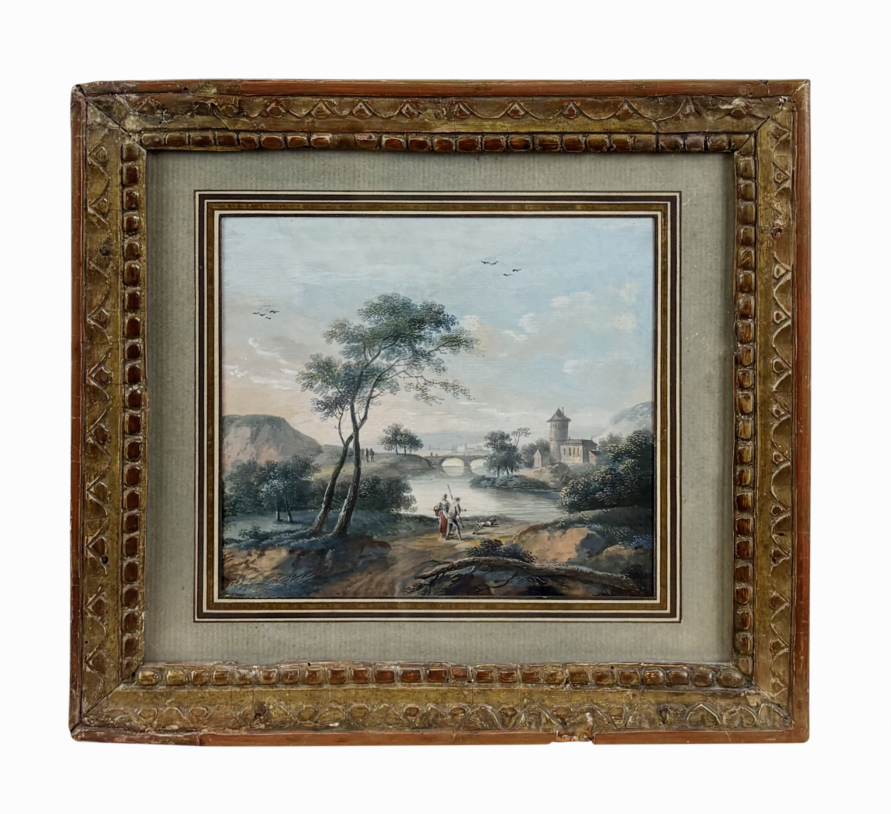 Paysage animé, aquarelle sur papier, 15x15 cm. Provenance collection Boin-Taburet