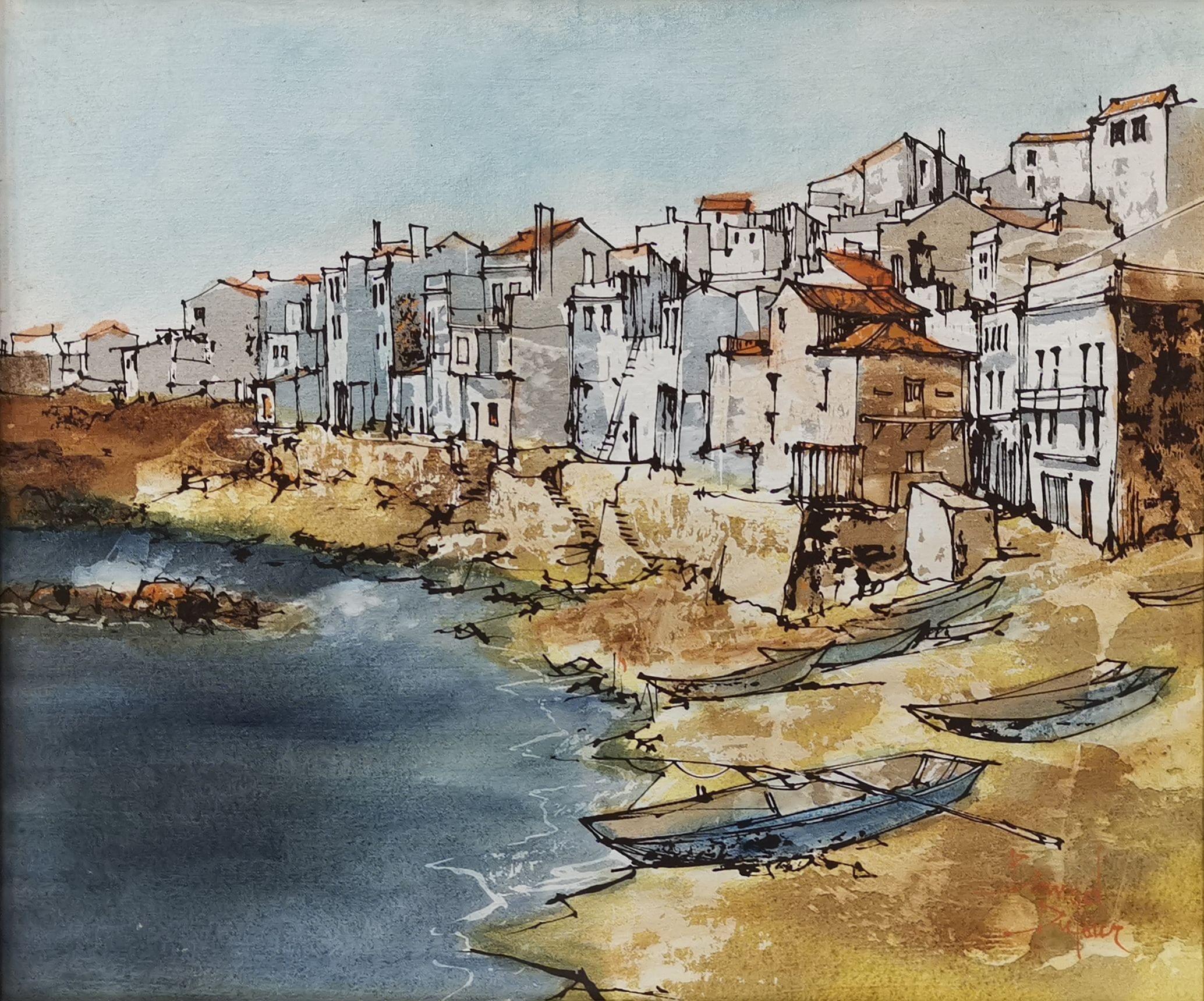 C hâteau près du lac, lavis monogrammé AH, 16x22m. Provenance: c...