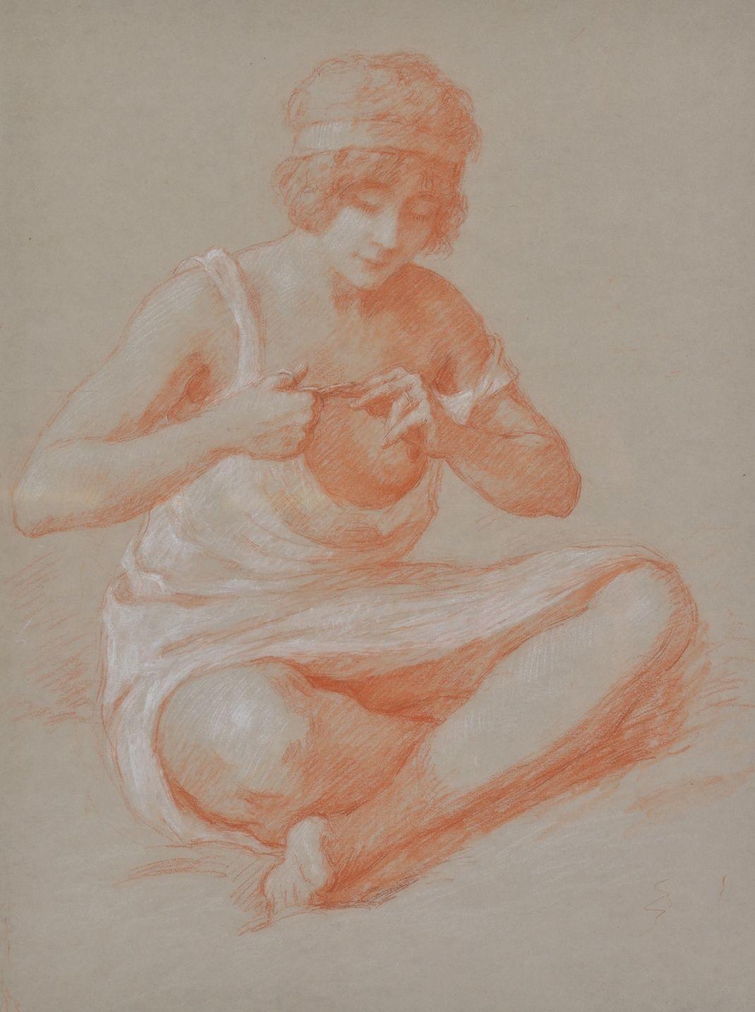 Nu accroupi, sanguine sur papier, 57x42 cm