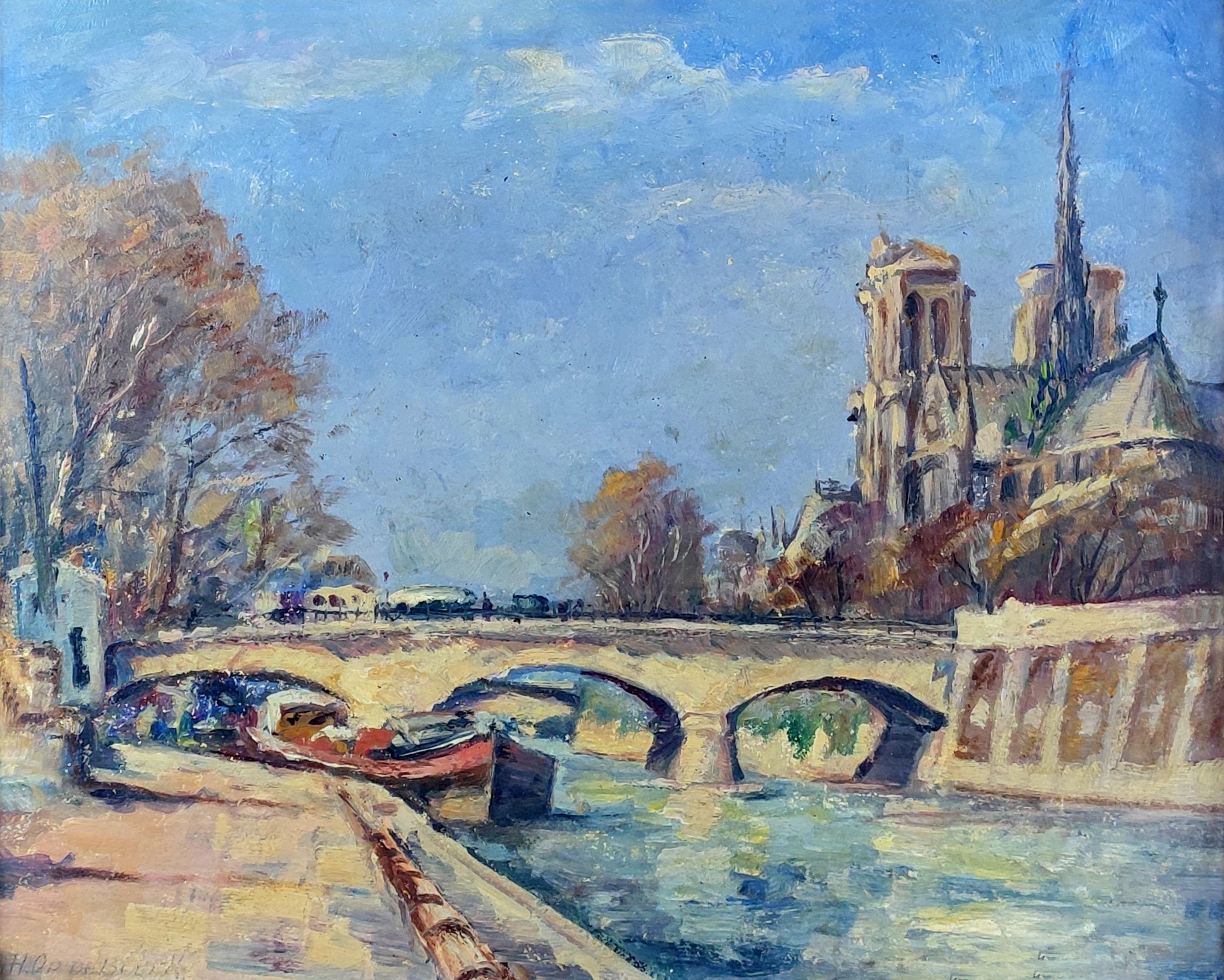 Notre-Dame de Paris, huile sur toile, signée H. Op de beck, 32x40 cm