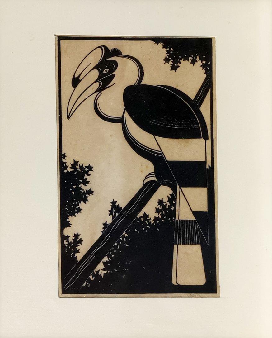 Toucan, bois gravé, signé A.C. Mieog, 21x13 cm
