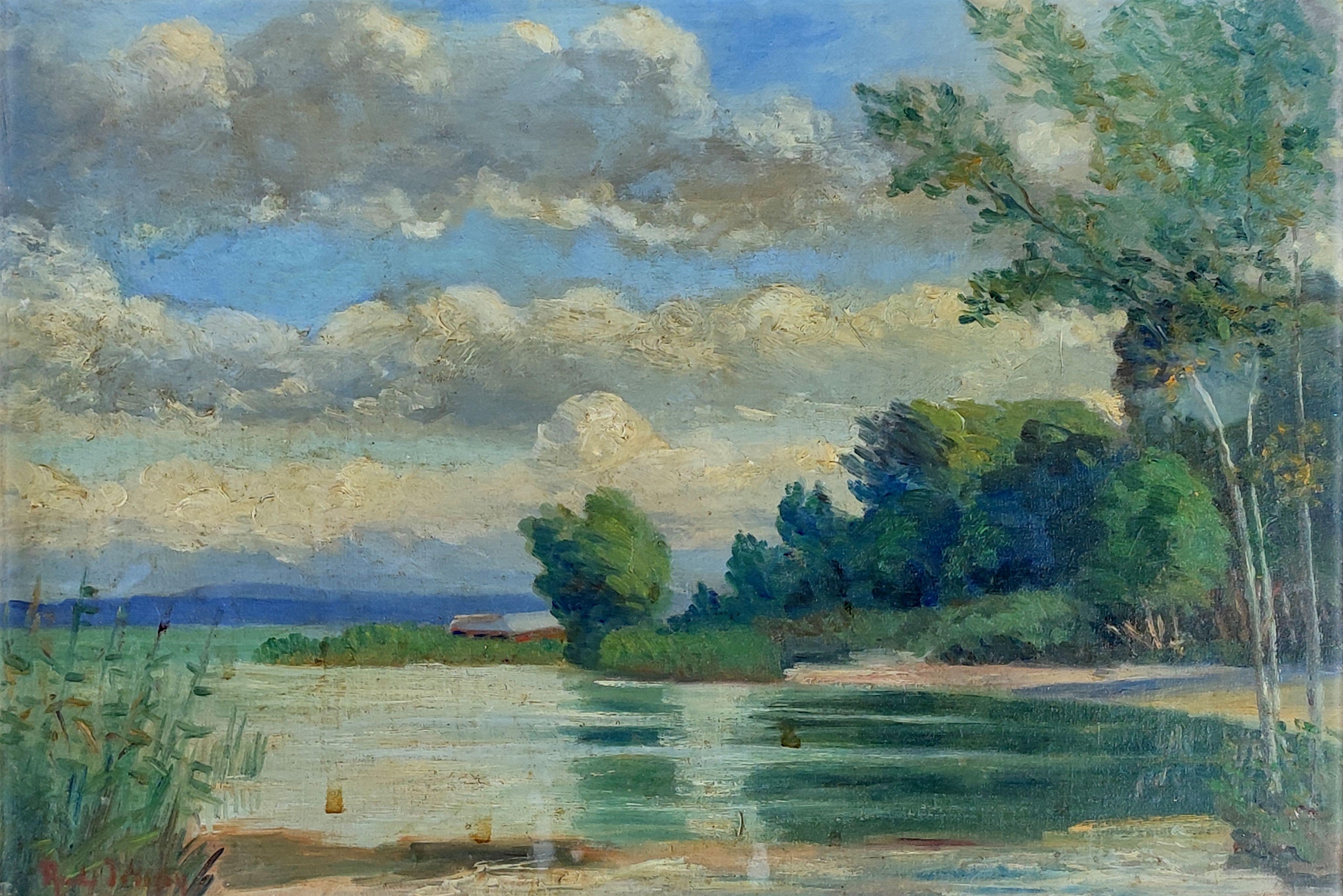 Paysage, huile sur carton, signature illisible, 38x46 cm