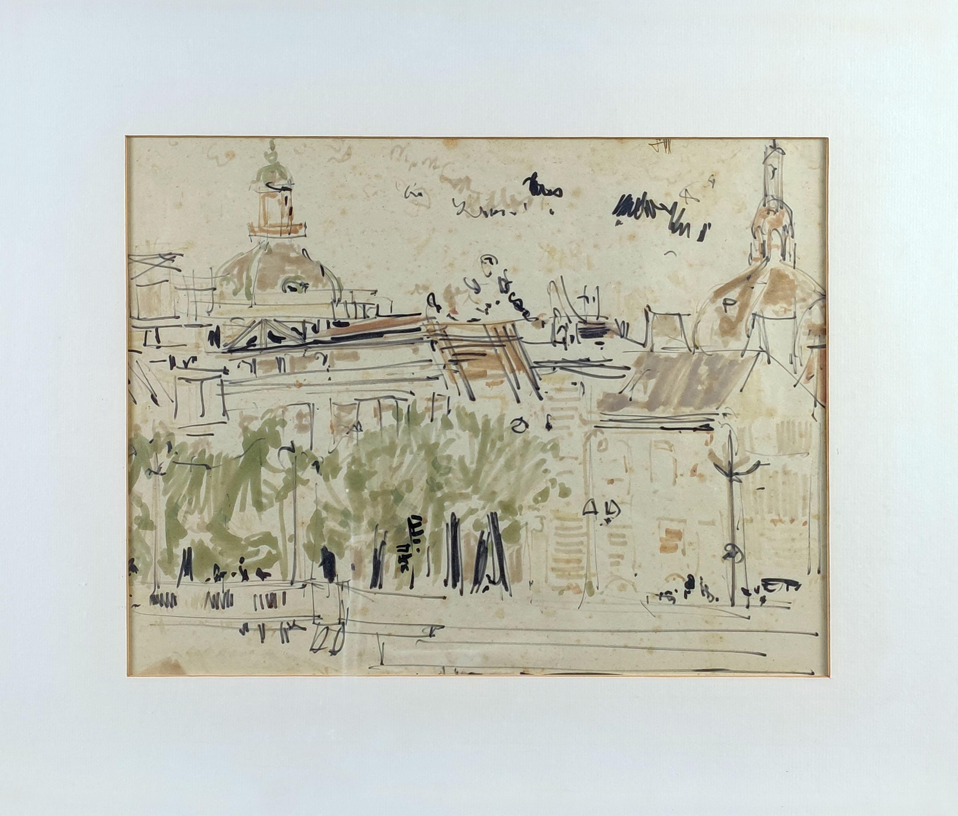 Vue de ville, feutre sur papier, 30x40 cm