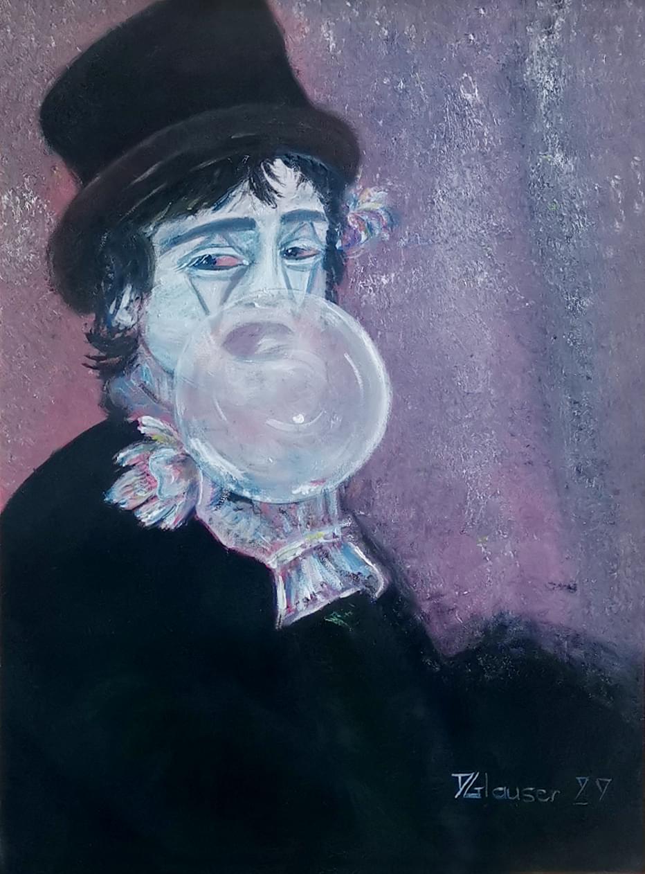 Clown, huile sur toile, signée et datée 88, 35x26 cm