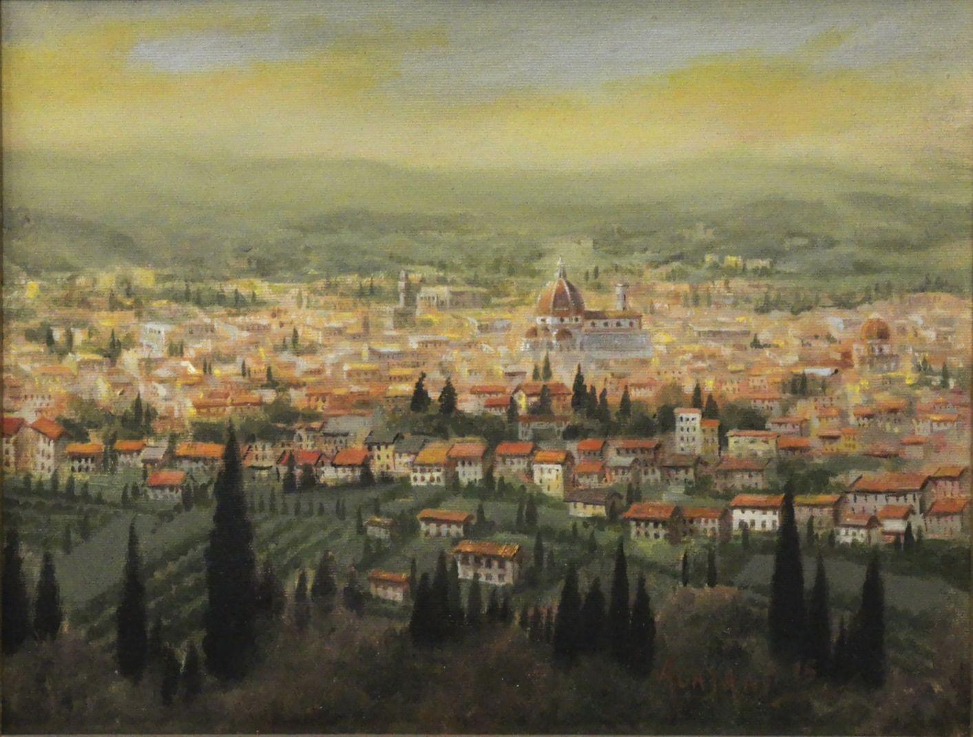 Vue de Florence, huile sur toile signée Agajani, 33x42 cm. Provenance: collection Pernet-Villaverde