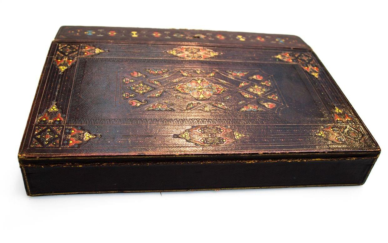 Cuir gaufré et peint, milieu XIXe , 9x35x25 cm