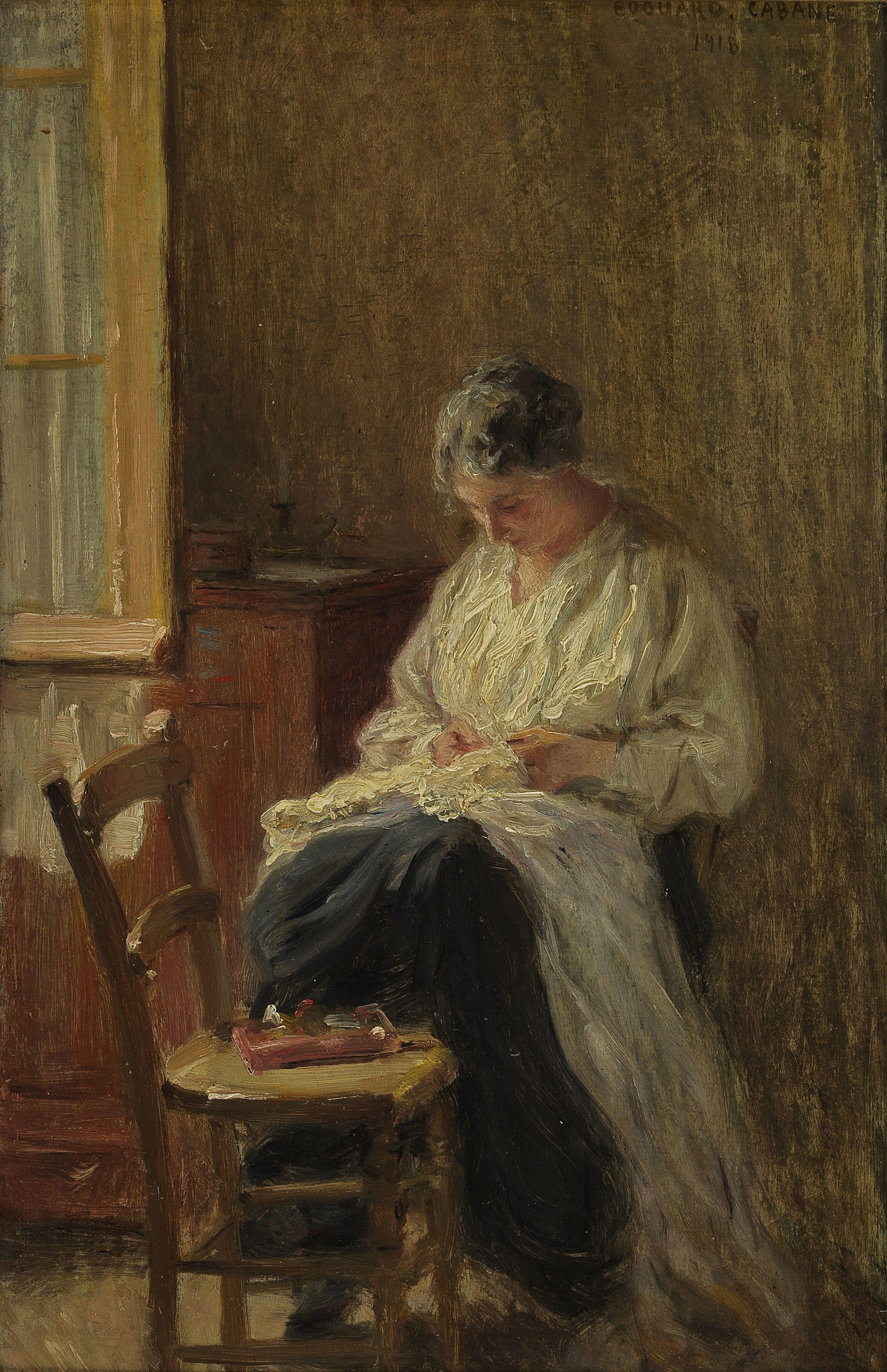 Portrait de sa mère, huile sur panneau, signée et datée 1918, 33,5x21 cm