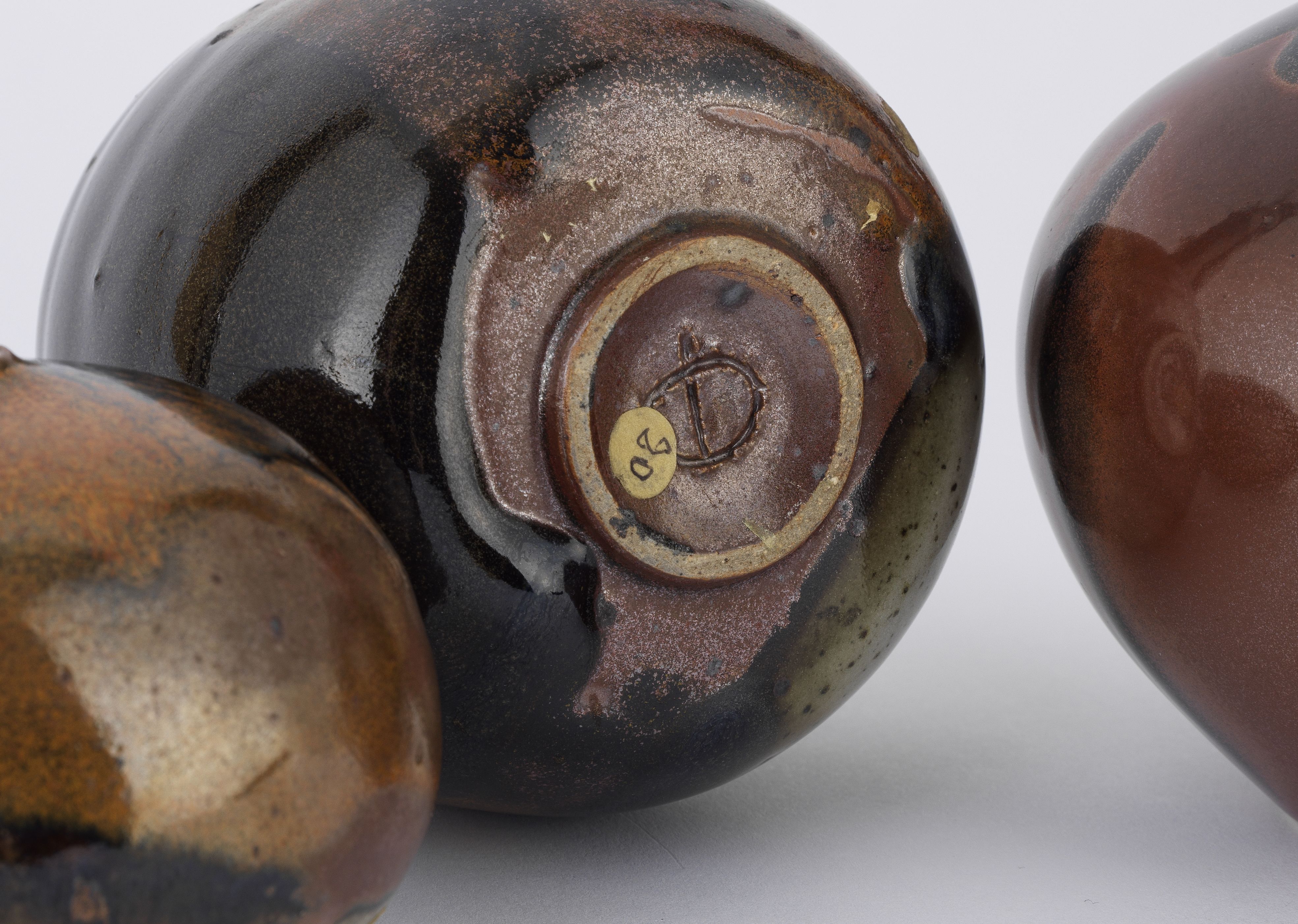 Trois petits vases boule, céramique émaillée, H de 8 à 11 cm