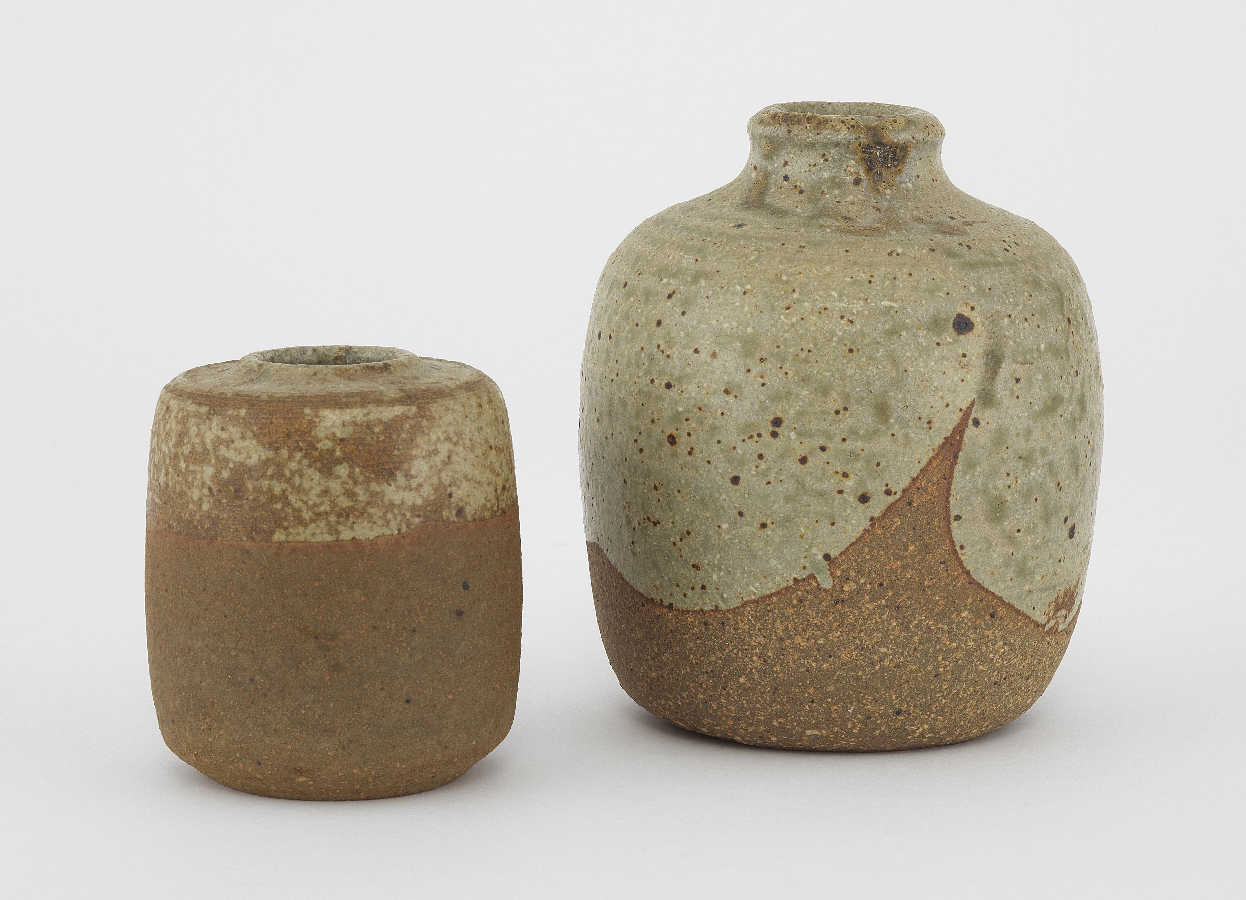 Deux vases, grès émaillé brun, signés, H 7 et 11cm