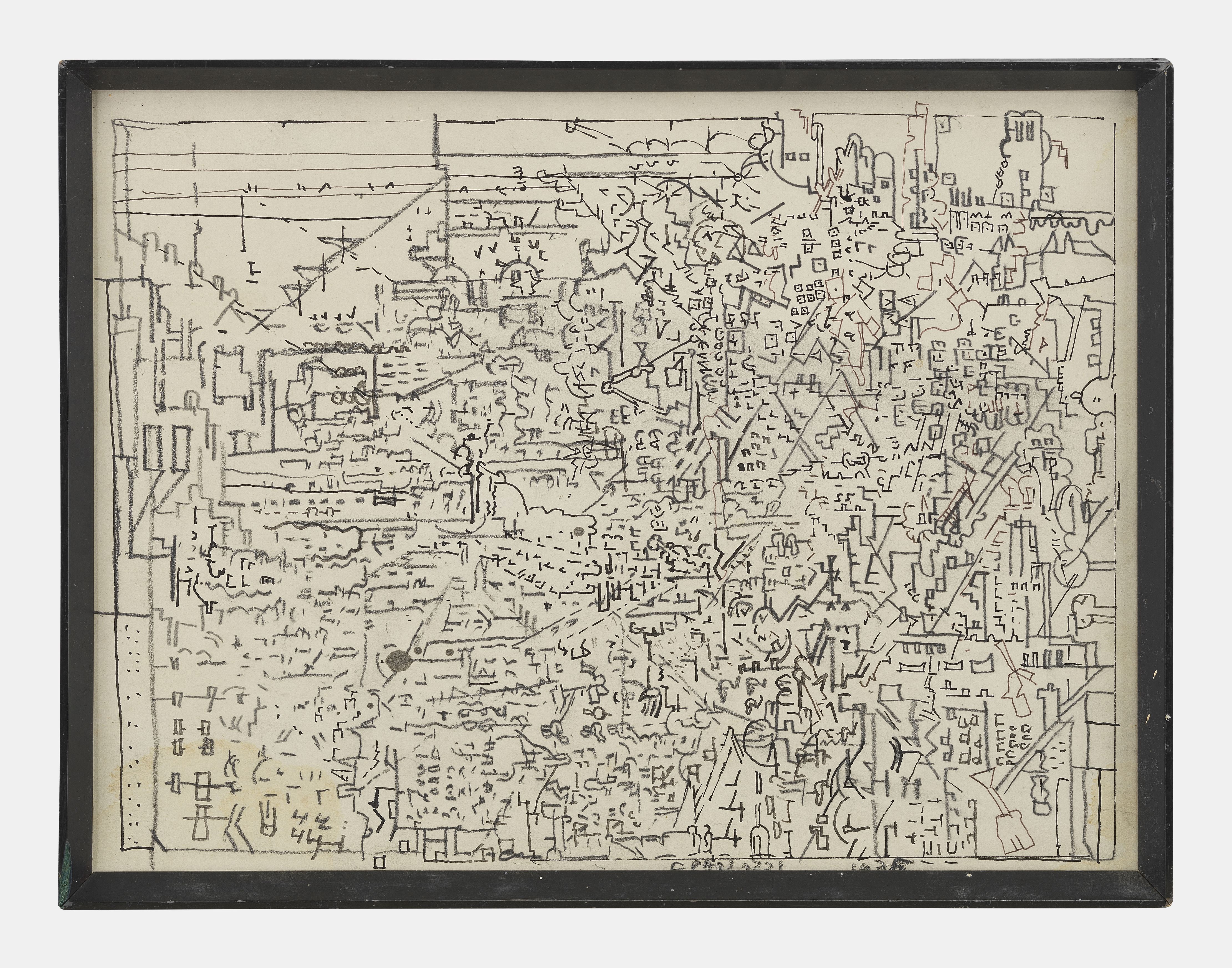 Sans titre, crayon et encre sur papier, signé et daté 1975, 23,5x31 cm