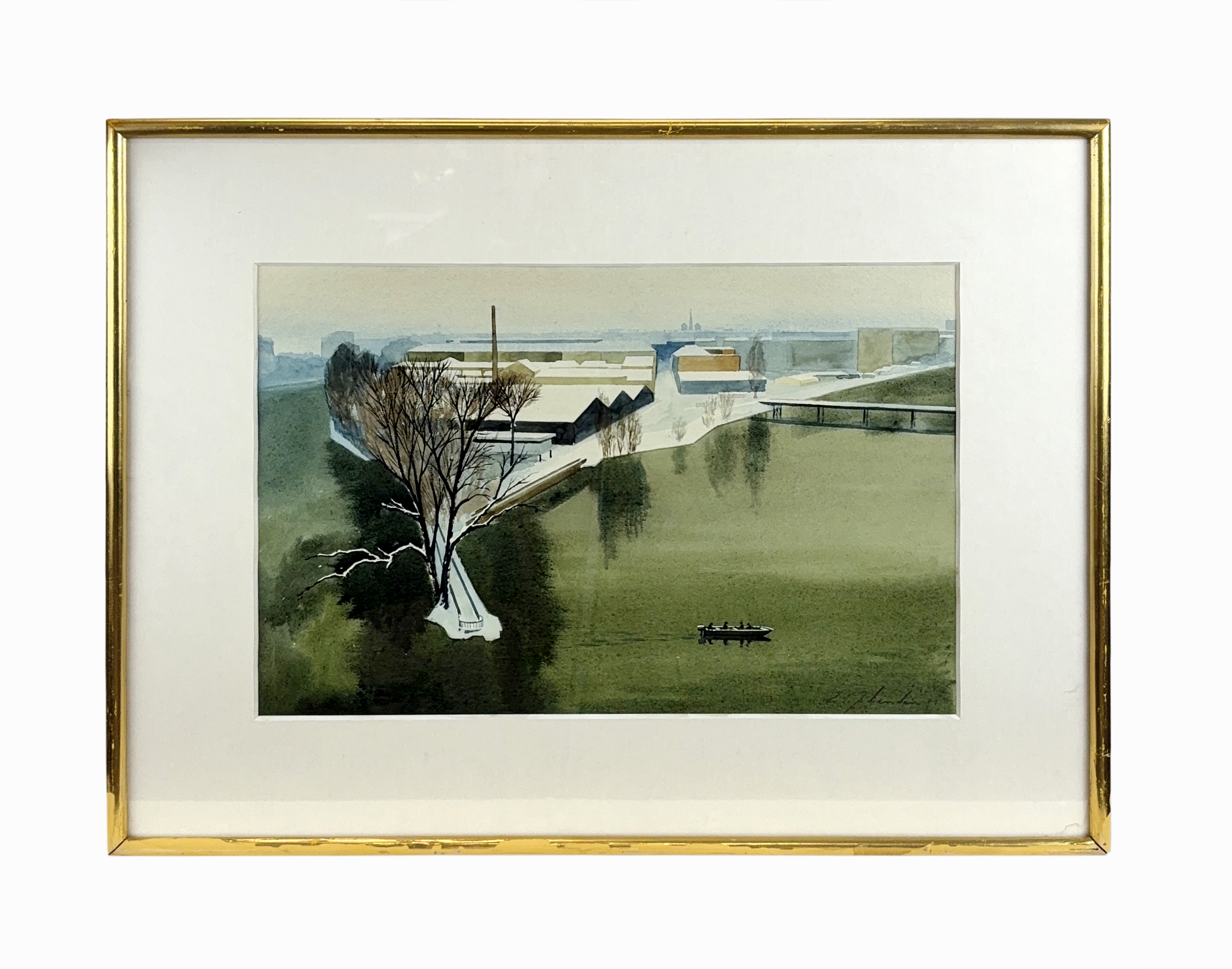 La jonction, vue du pont, aquarelle, signée et datée 79, 32x47 cm