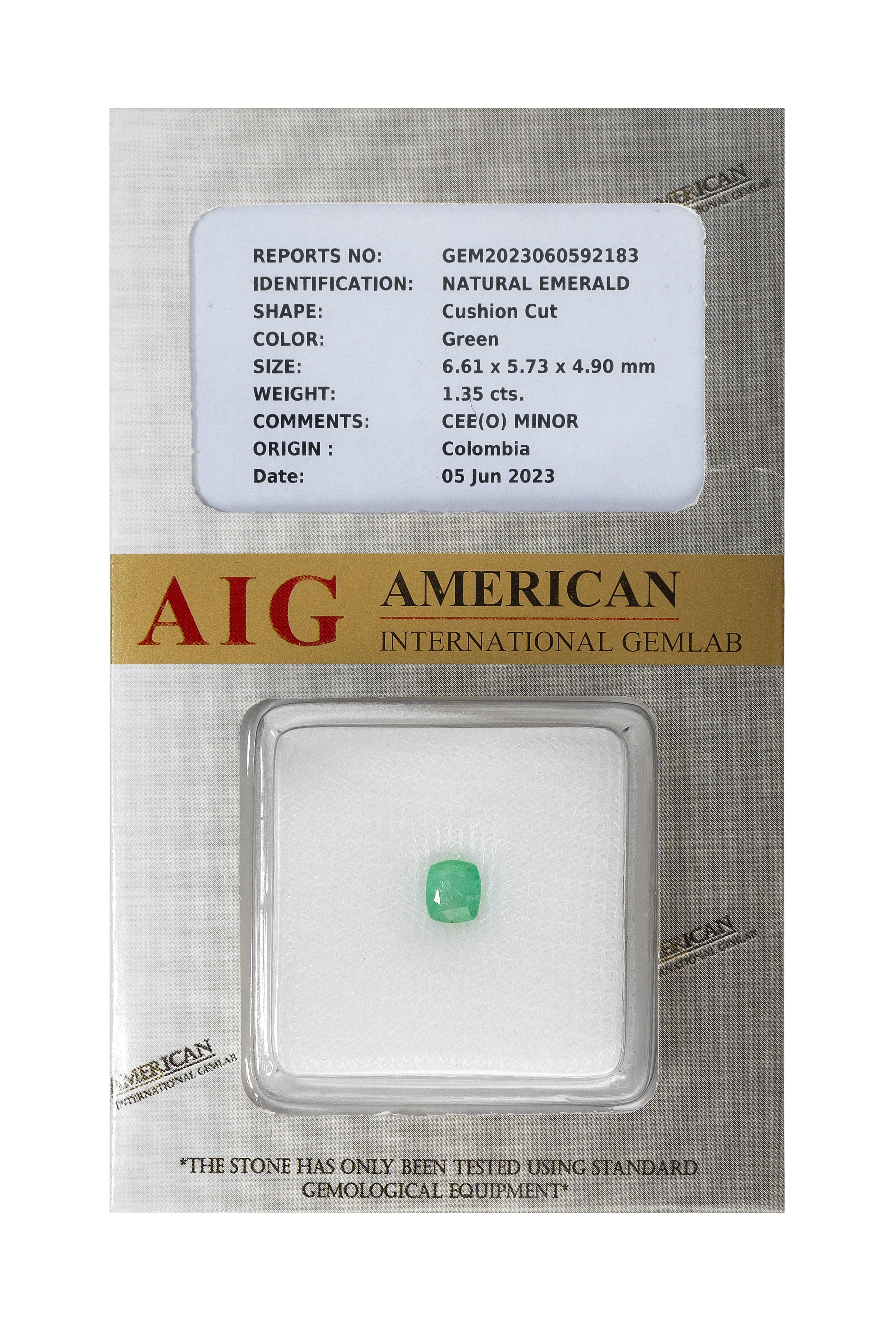 3646. *Emeraude colombienne taille coussin ovale sur papier