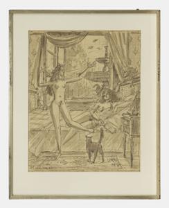 Le voyeur, encre sur papier, datée 64, 40x32 cm