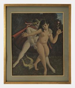 Apollon et Daphné, huile sur carton, signée et datée 53, 46x38 cm,