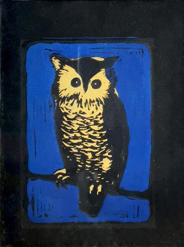 Hibou, aquarelle sur papier, signée, 17x12 cm