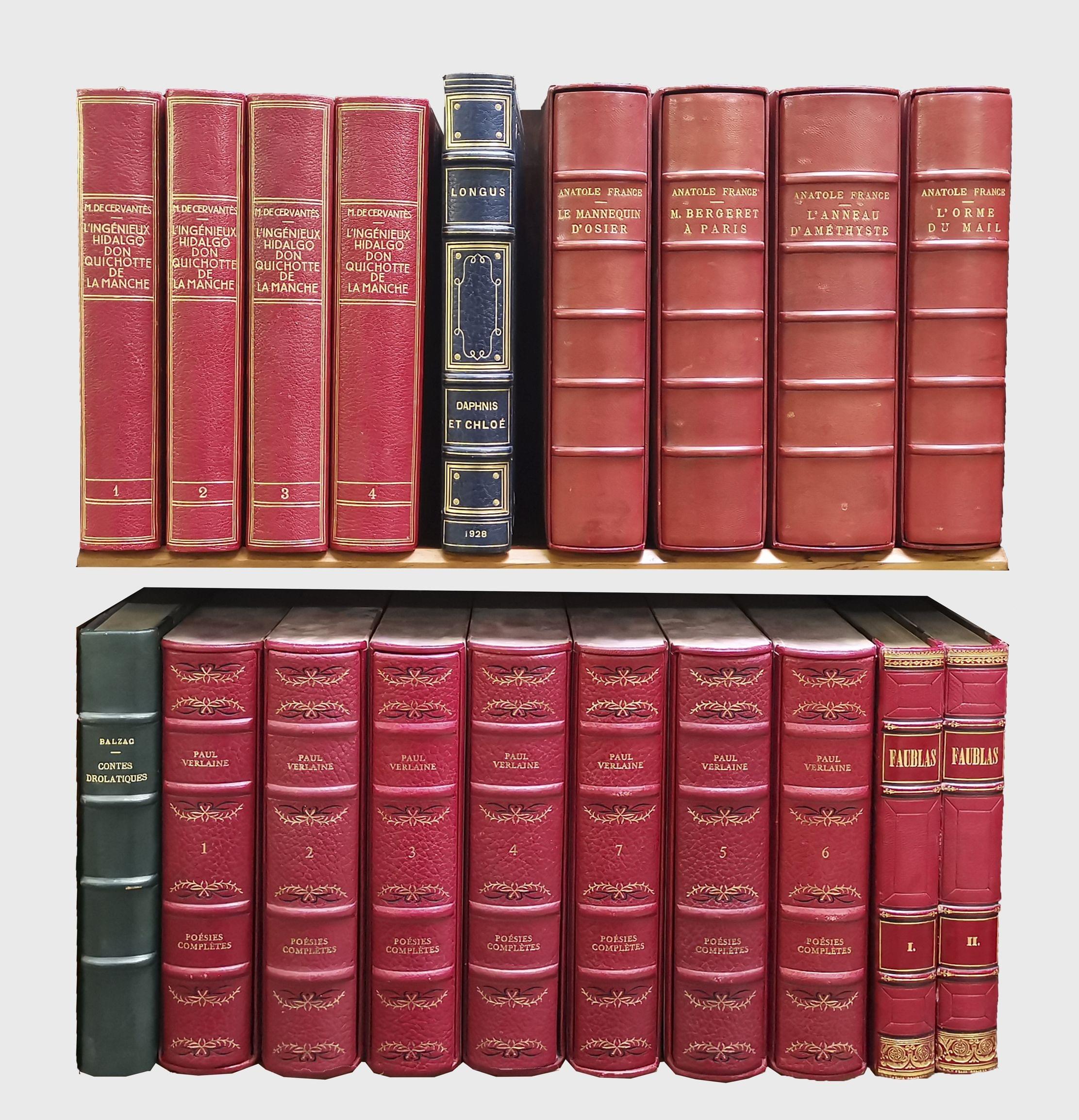 293. RESTIF DE LA BRETONNE: Ensemble 8 vol. in 12, demi chag. rouge à...